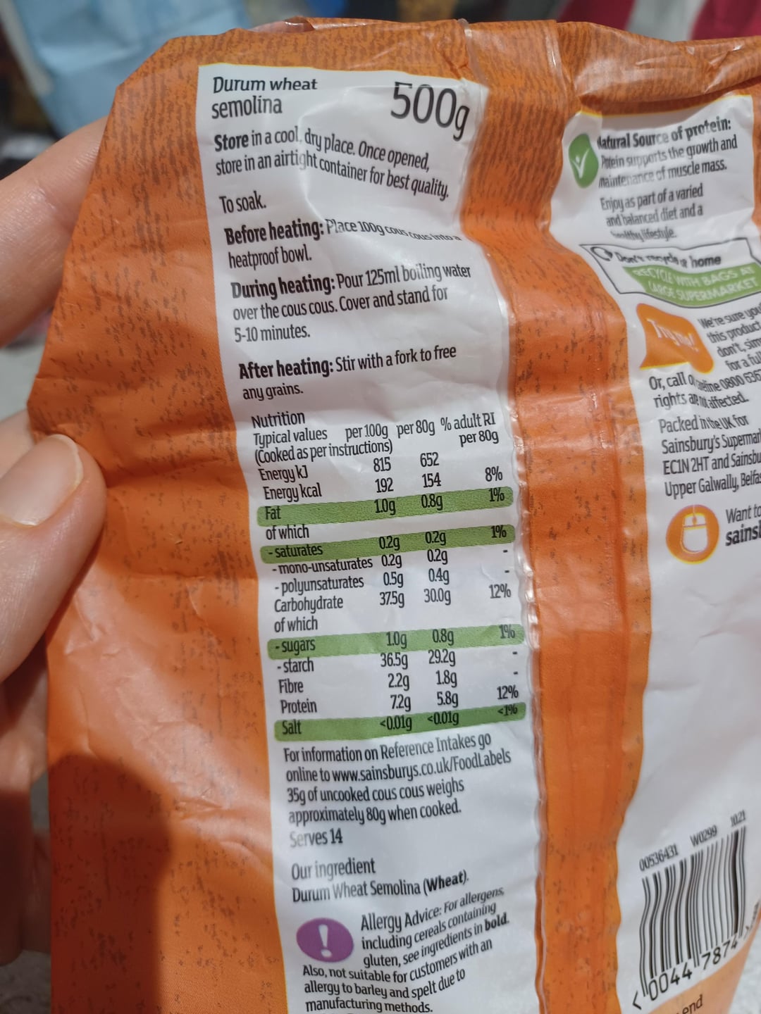 I realised that my protein levels each day were terribly low and so I’m trying to improve that. I bought both quinoa and couscous from my local supermarket (UK based). I’d heard that quinoa is better in terms of protein and out of interest looked at the packet. Confusingly, the couscous is showing higher in protein at 7.2g per 100g, with quinoa only at 3.5g! And neither of these numbers are anywhere close to the 14g that some Internet research tells me 100g should contain.