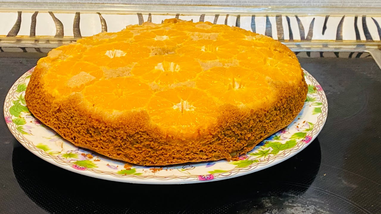Peel and cut the tangerines in half. Put in a dish. Pour the dough on top. Oven cook for 45 minutes at 360 F