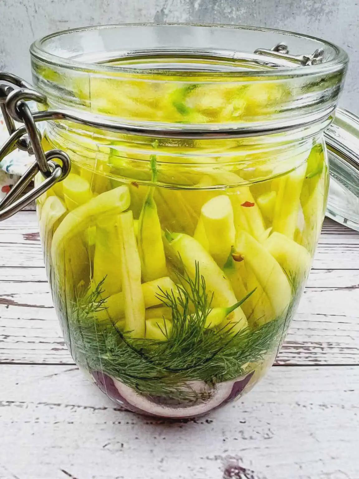 What is your favorite pickled vegetable? Share it with us! As a chef, I know the magic of quick pickling and how much flavor, texture, acidity, and color that pickled anything can bring to the plate. These quick Pickled Yellow Beans are a particular favorite.