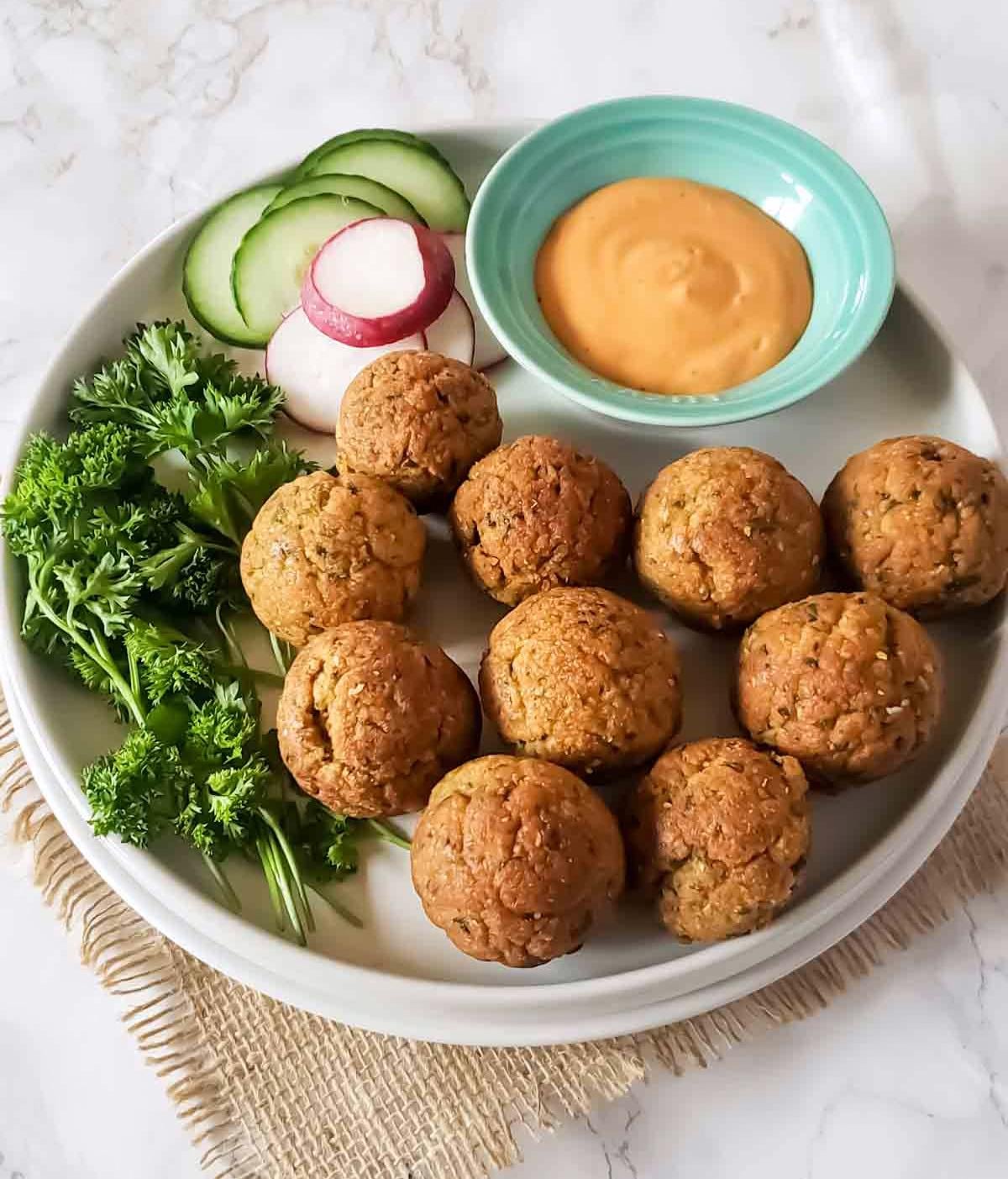 Love the delicious falafel with creamy dipping 😍[Recipe link ](https://profusioncurry.com/baked-falafel-recipe-with-air-fryer-or-oven/)