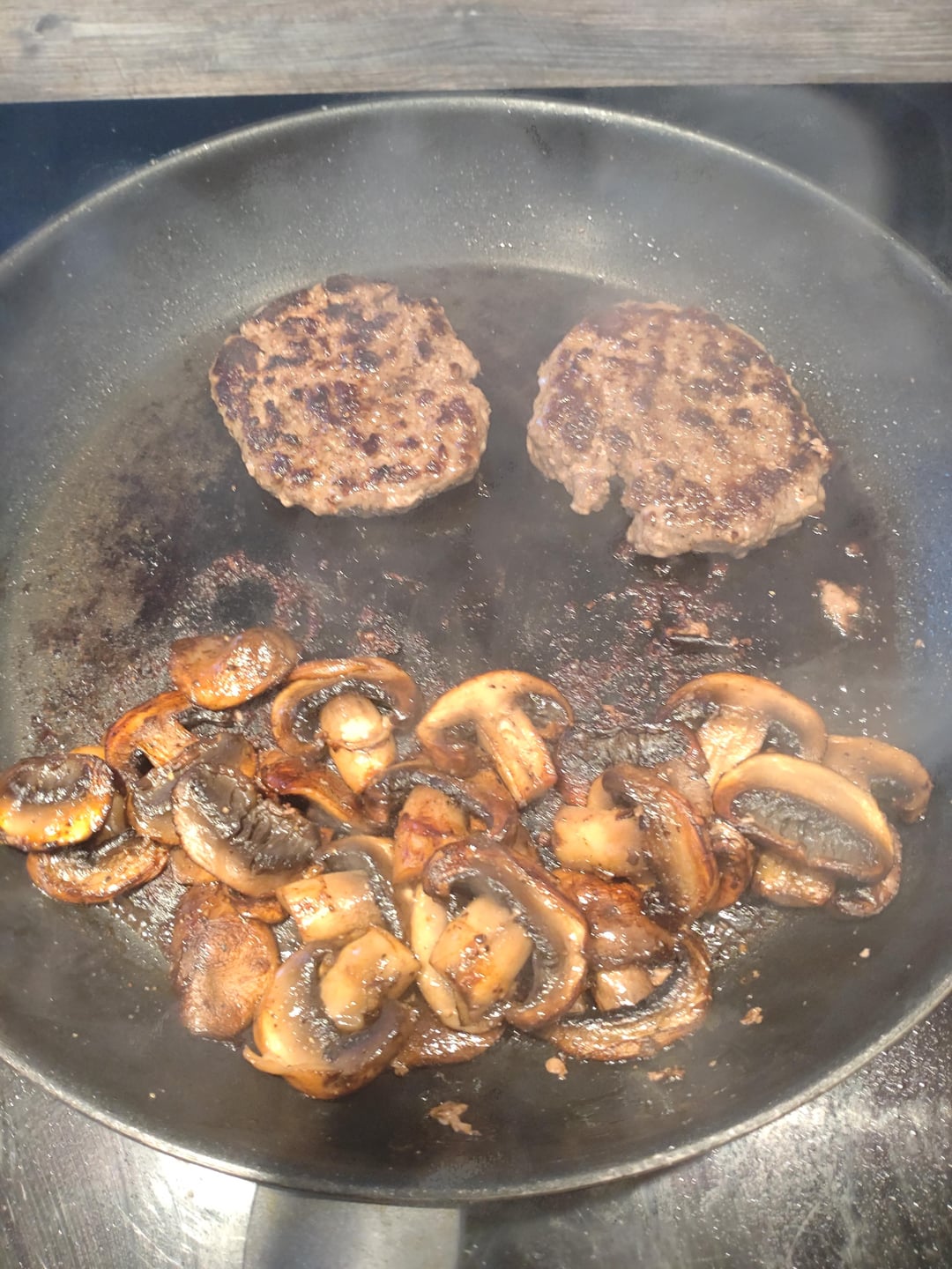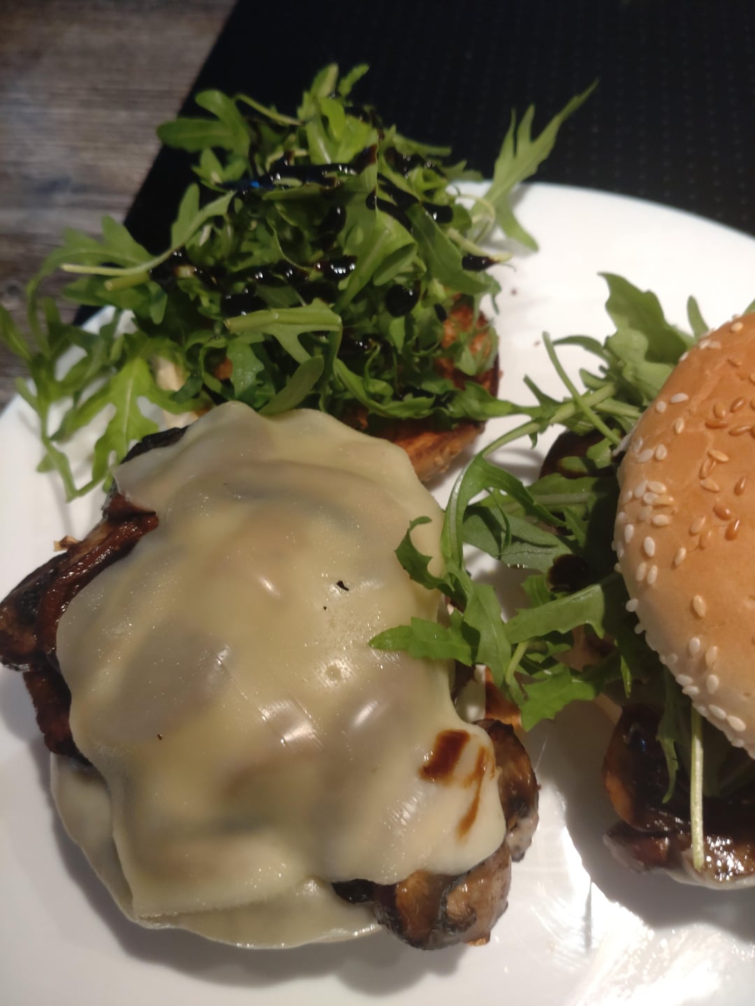 Sugarpuff_Karma on April 28, 2024 9:53 pm Two steak burgers on sesame seed buns with chestnut mushrooms, Gouda cheese. Rocket & balsamic glaze on top a little Mayo & mustard on the bottom.