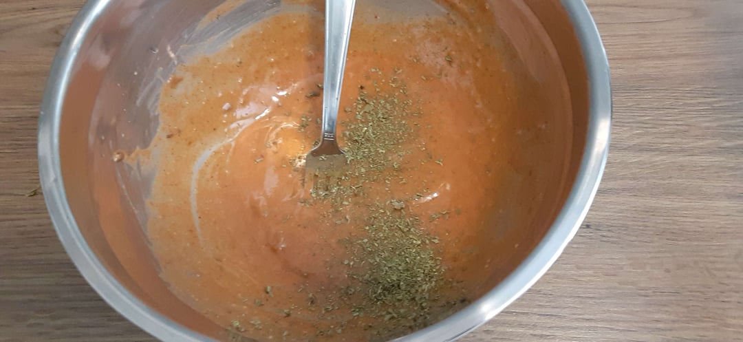 While the tofu is baking, mix the remaining ingredients, including any leftover herb mix, then boil for a minute just before adding it to the baked tofu.