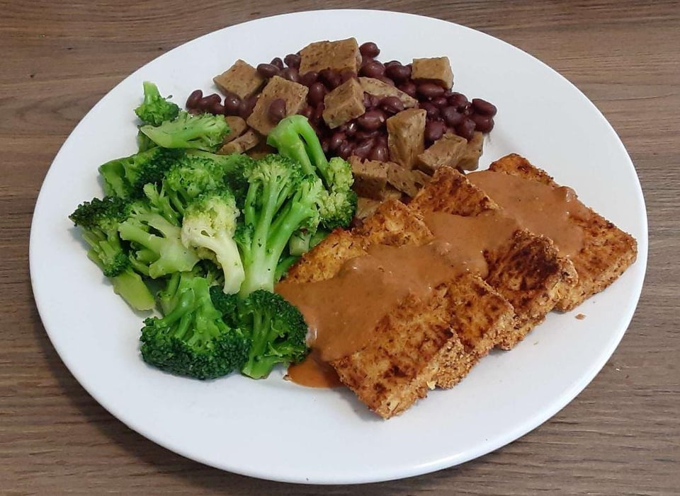 I served this with seitan & black beans with a dash of balsamic vinegar and steamed broccoli. Here’s my [seitan recipe](https://www.reddit.com/r/vegetarian/comments/t1l8me/air_fried_seitan/), but for this meal, I steamed it in an instant pot on high pressure for 30 minutes, instead of air-frying.