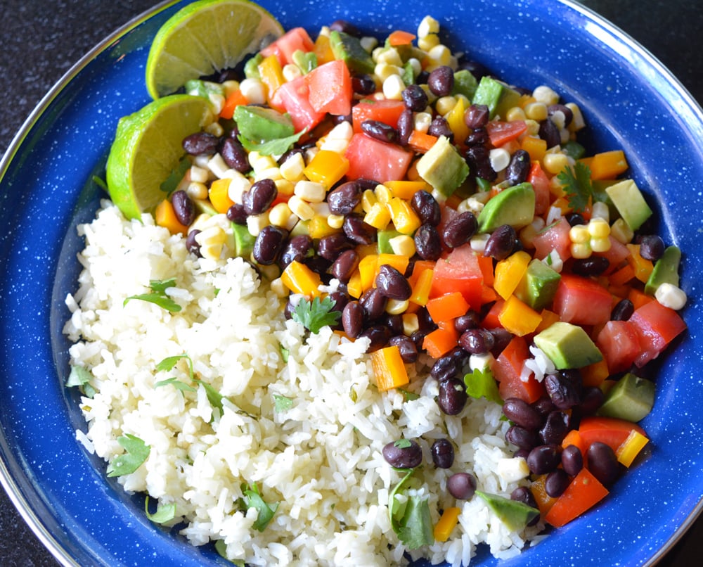 Home»1200 Calorie Vegan»384 cals – My version of Texas caviar with cilantro lime rice mix