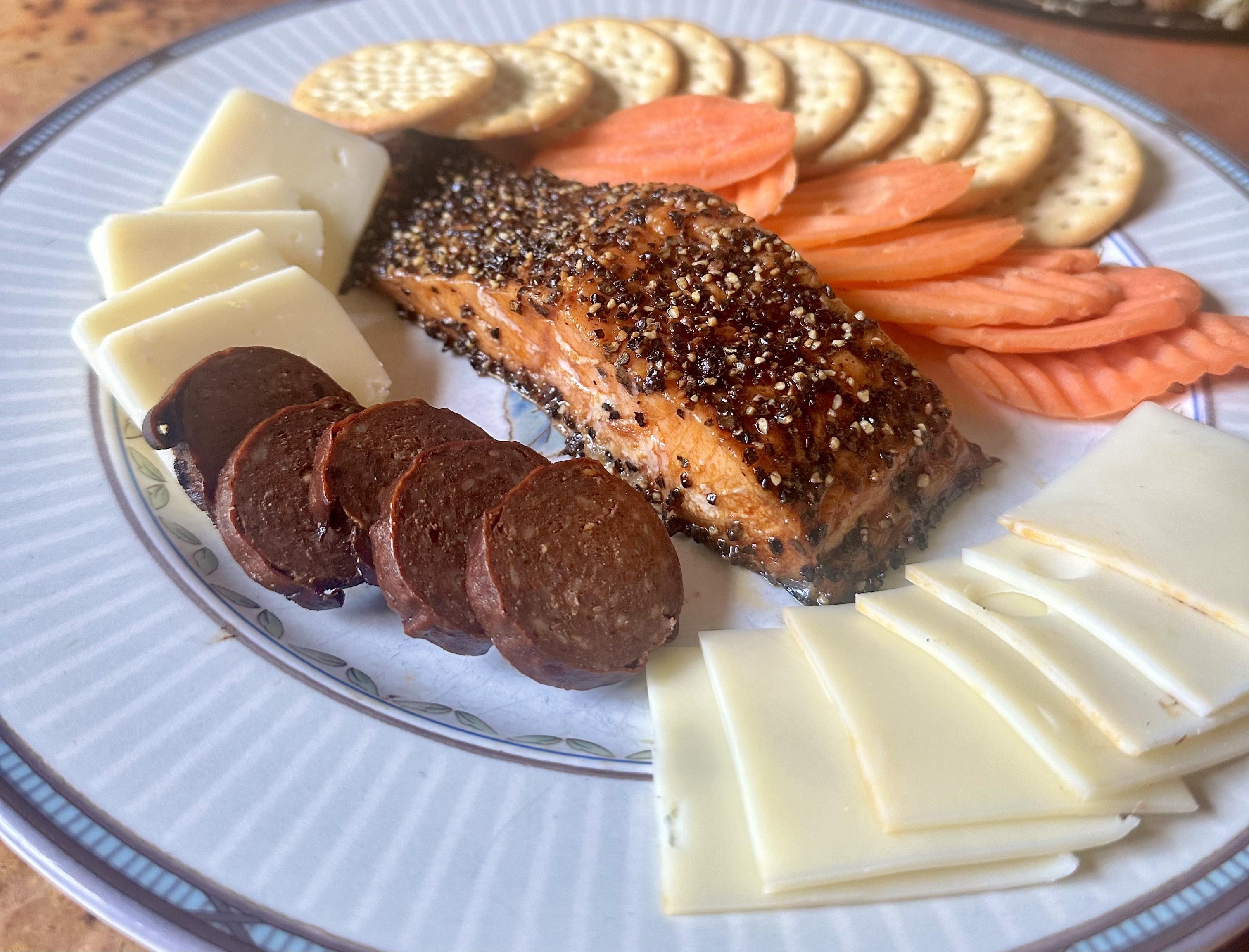 Cold plate of smoked salmon and chorizo
