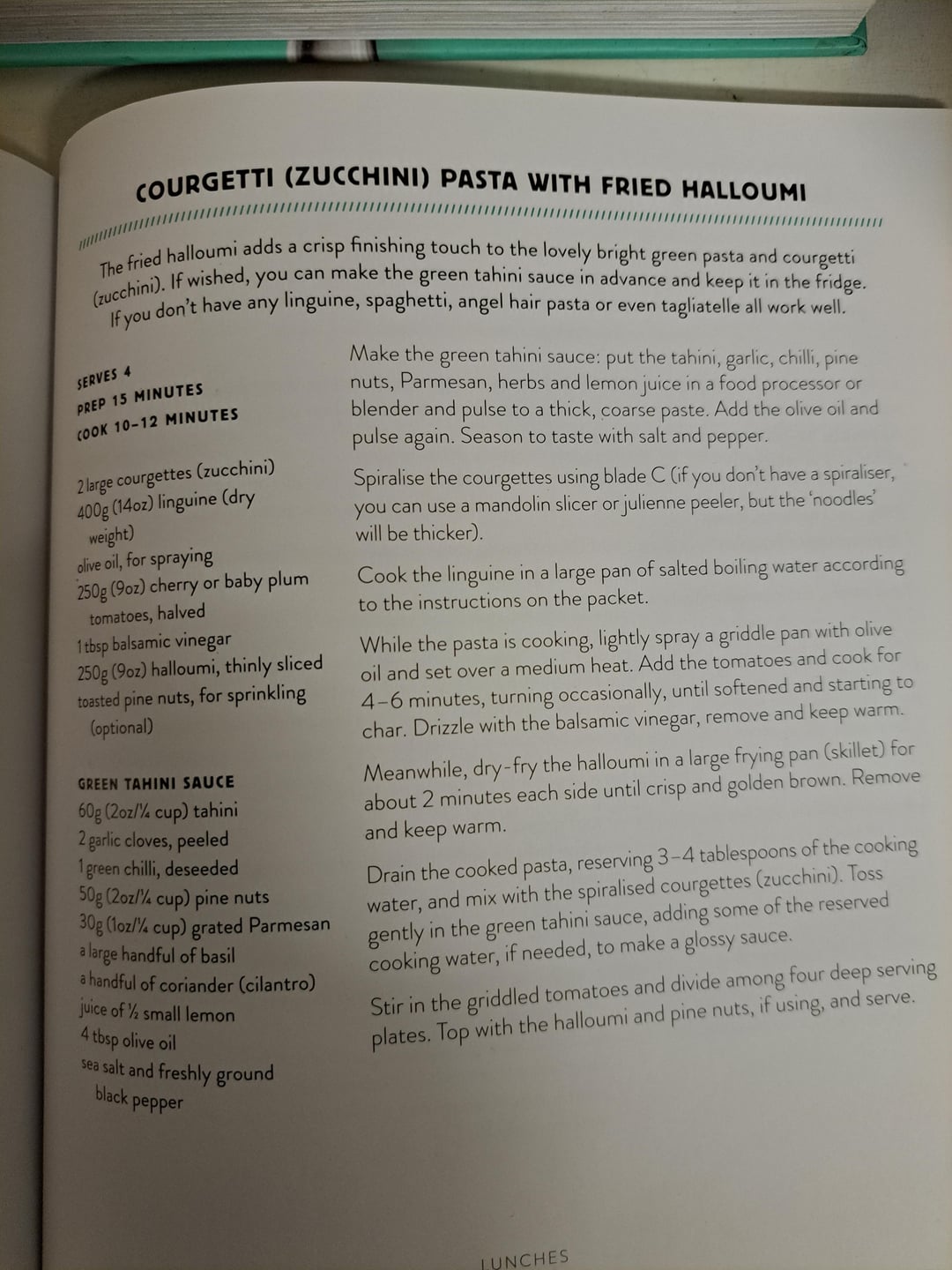 I got this from a Halloumi Recipes book (see the second photo). It's supposed to use spiralised courgette but I don't have a spiriliser so I just sliced them thinly instead.