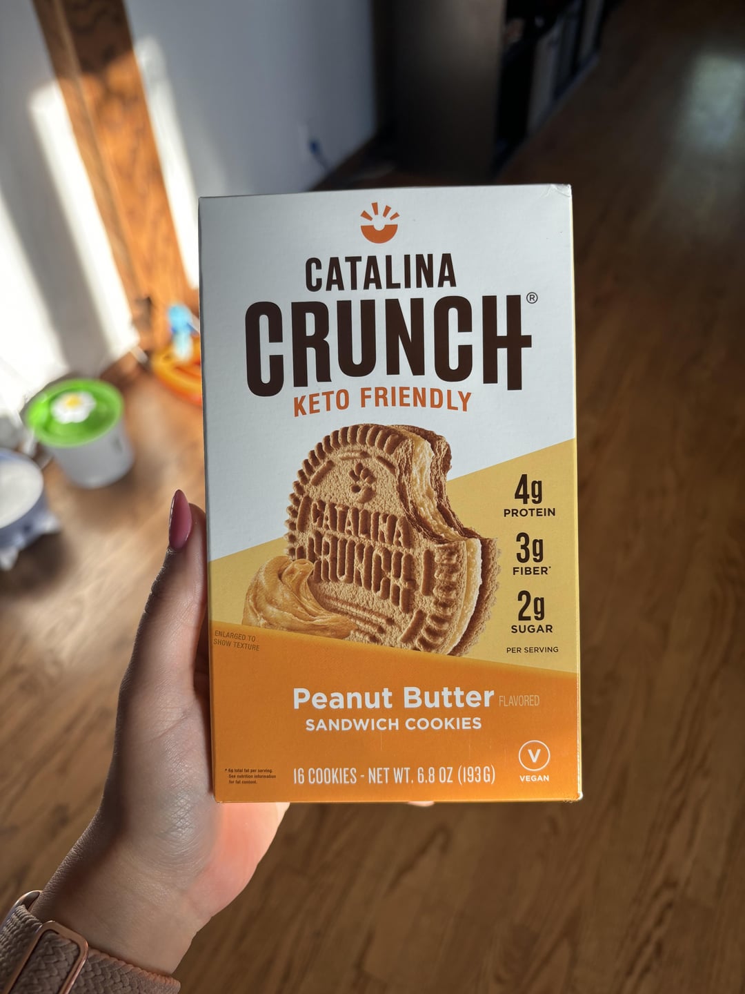 - had 2 of the catalina crunch peanut butter cookies for 4g of protein and 90 calories