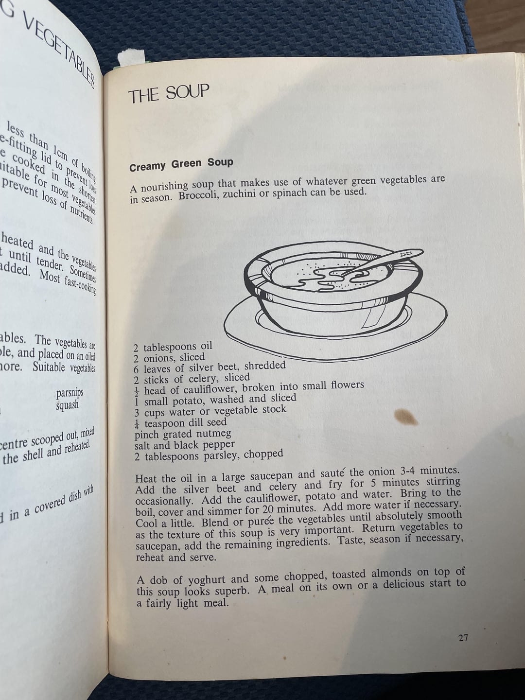 I was gifted a Vegetarian Times cook book from the early 90s. I have to add more seasoning and fats than what’s in the recipes though since the 80s-90s were all about low fat, low sodium.