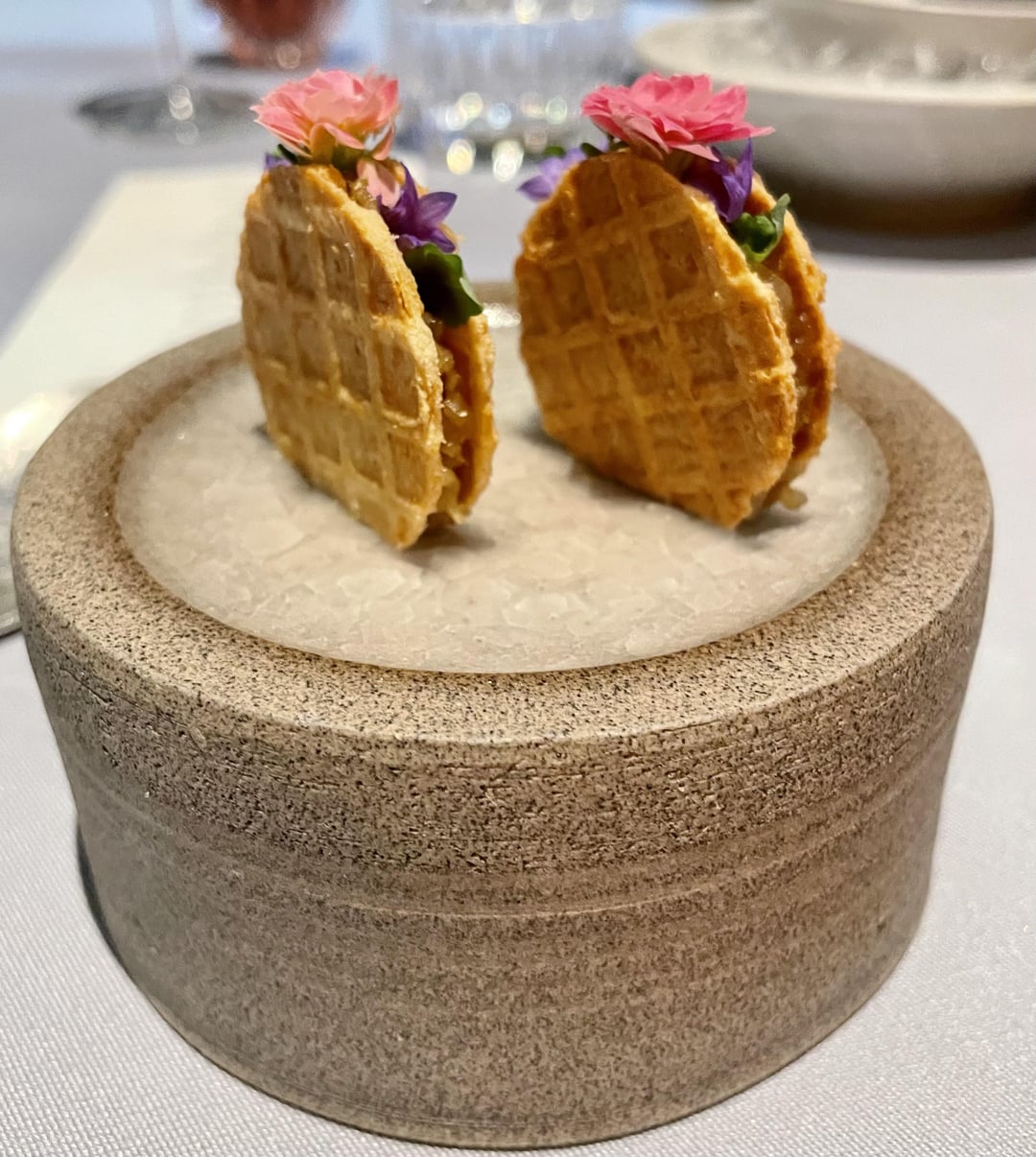 We went for the 13 course vegetarian menu with wine pairing. A vegan menu is an option also. I forgot to photograph a few.