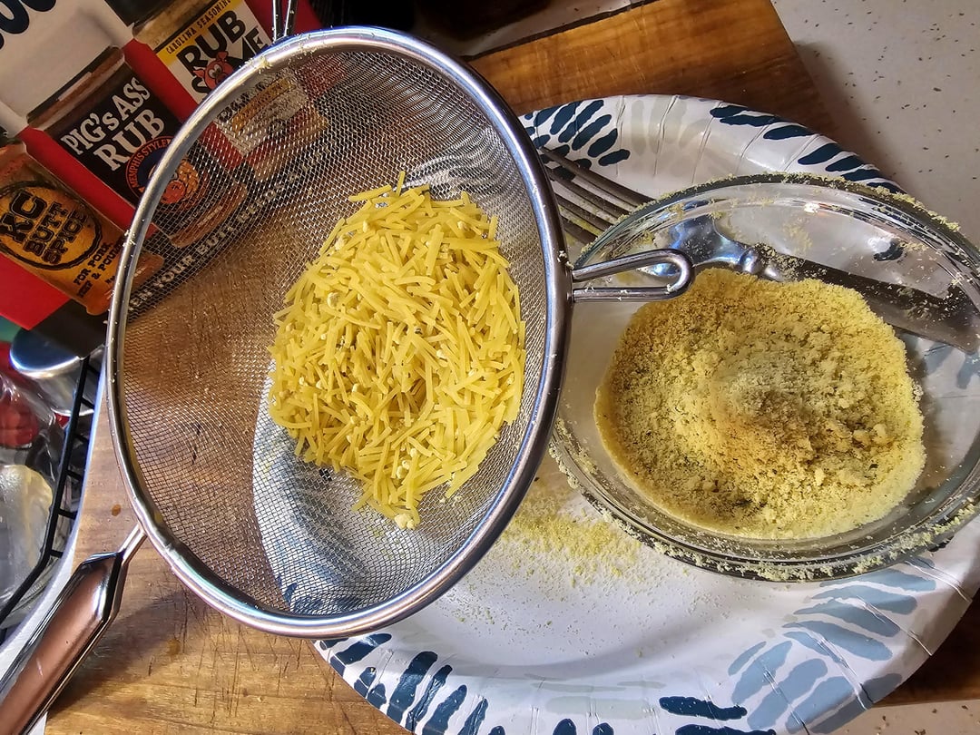Now the chicken noodle soup…so it's obviously not a dry rub and browns pretty quick, faster than the chicken cooks, however, even after losing some of it for that reason, it still tasted like chicken noodle soup…will definitely try again but with a different approach.