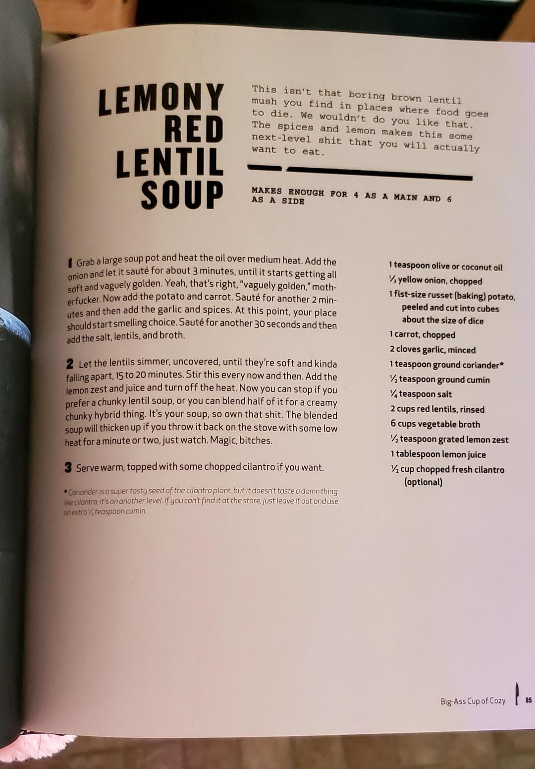 Lemony Red Lentil Soup with Spinach – 389 Calories, 22 grams of Protein
