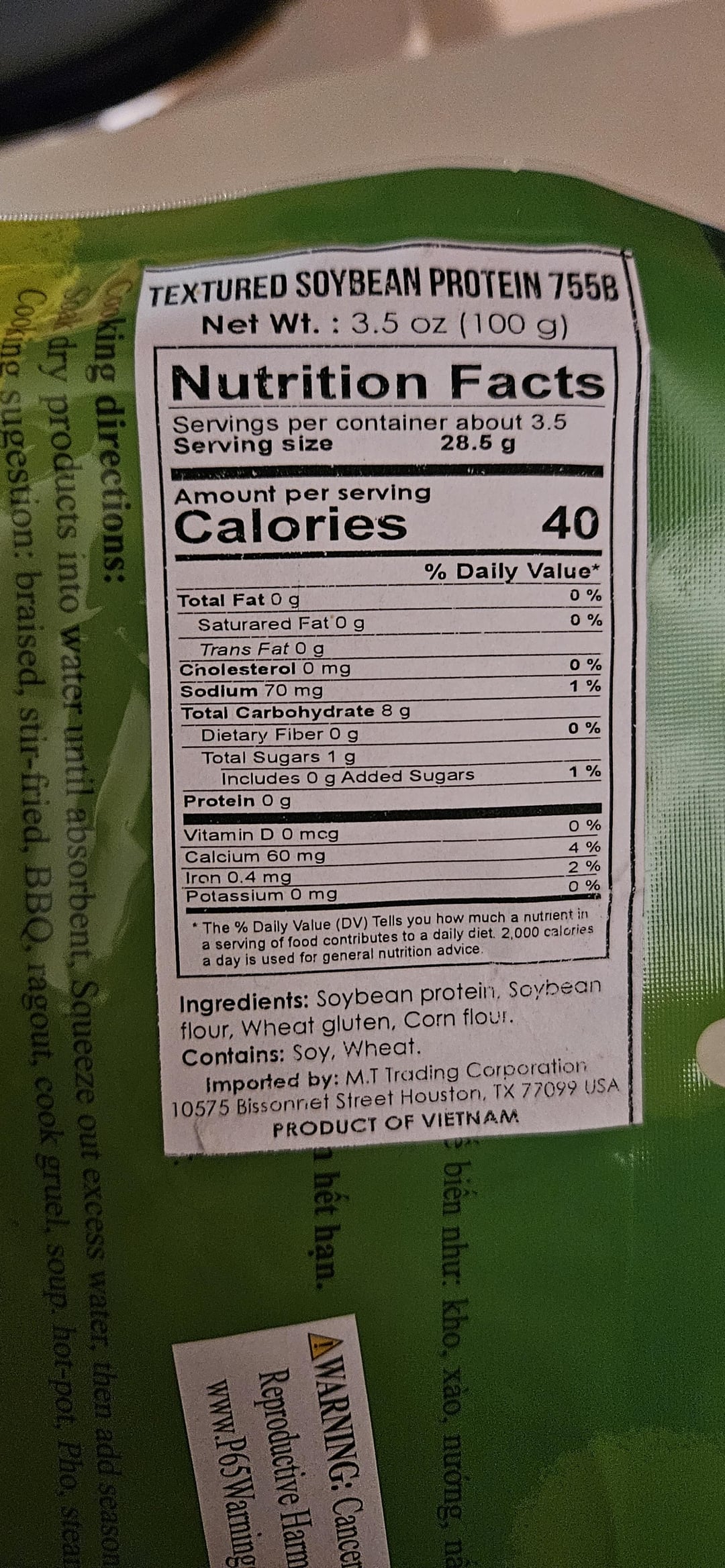 I bought some textured soy bean protein from my local Asian food market but the nutrition fact on it seem off. They have the protein count at 0g. Is that right?