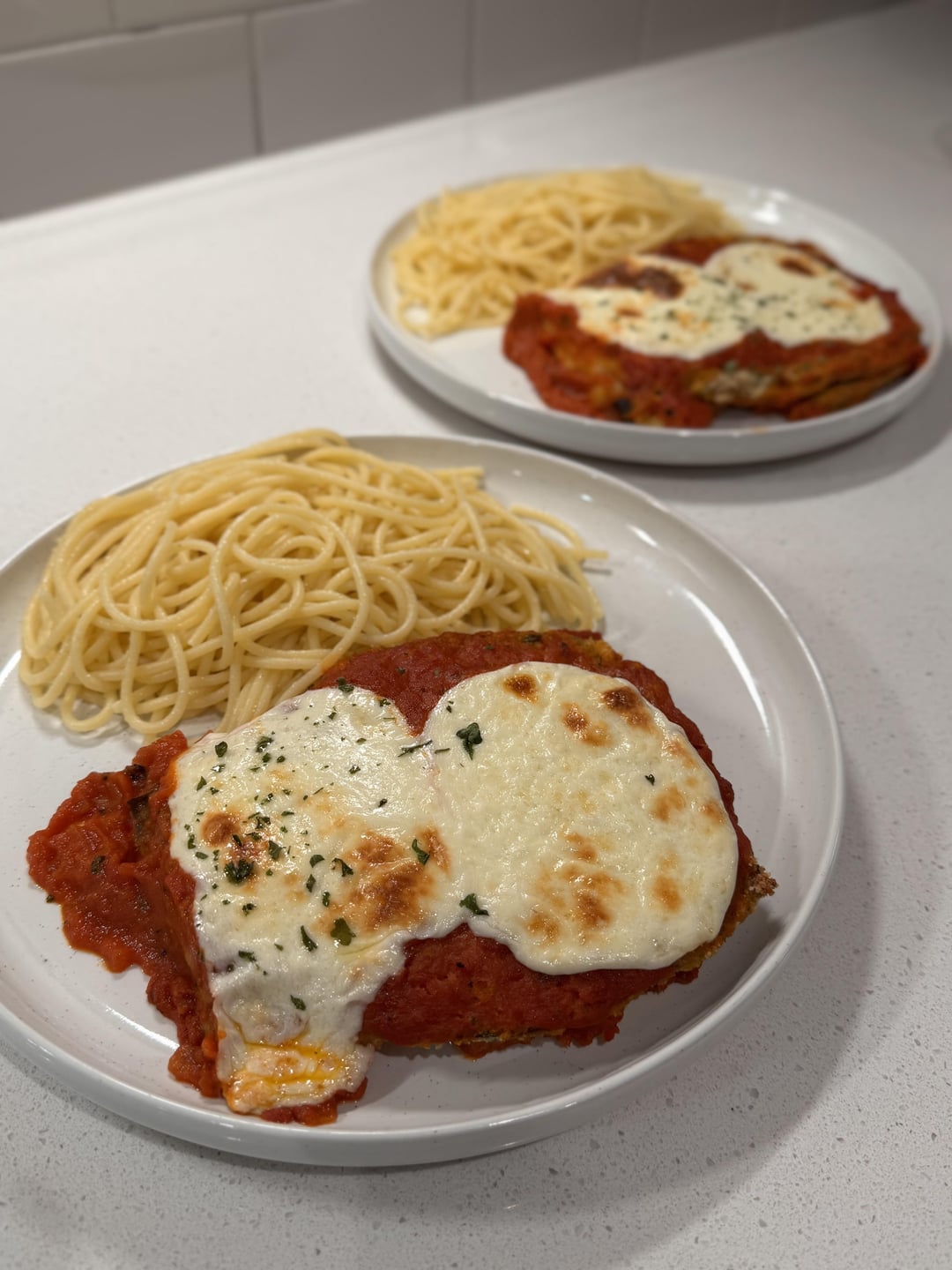 Add 1/3 of marinara to the bottom of a 9×13 baking dish.