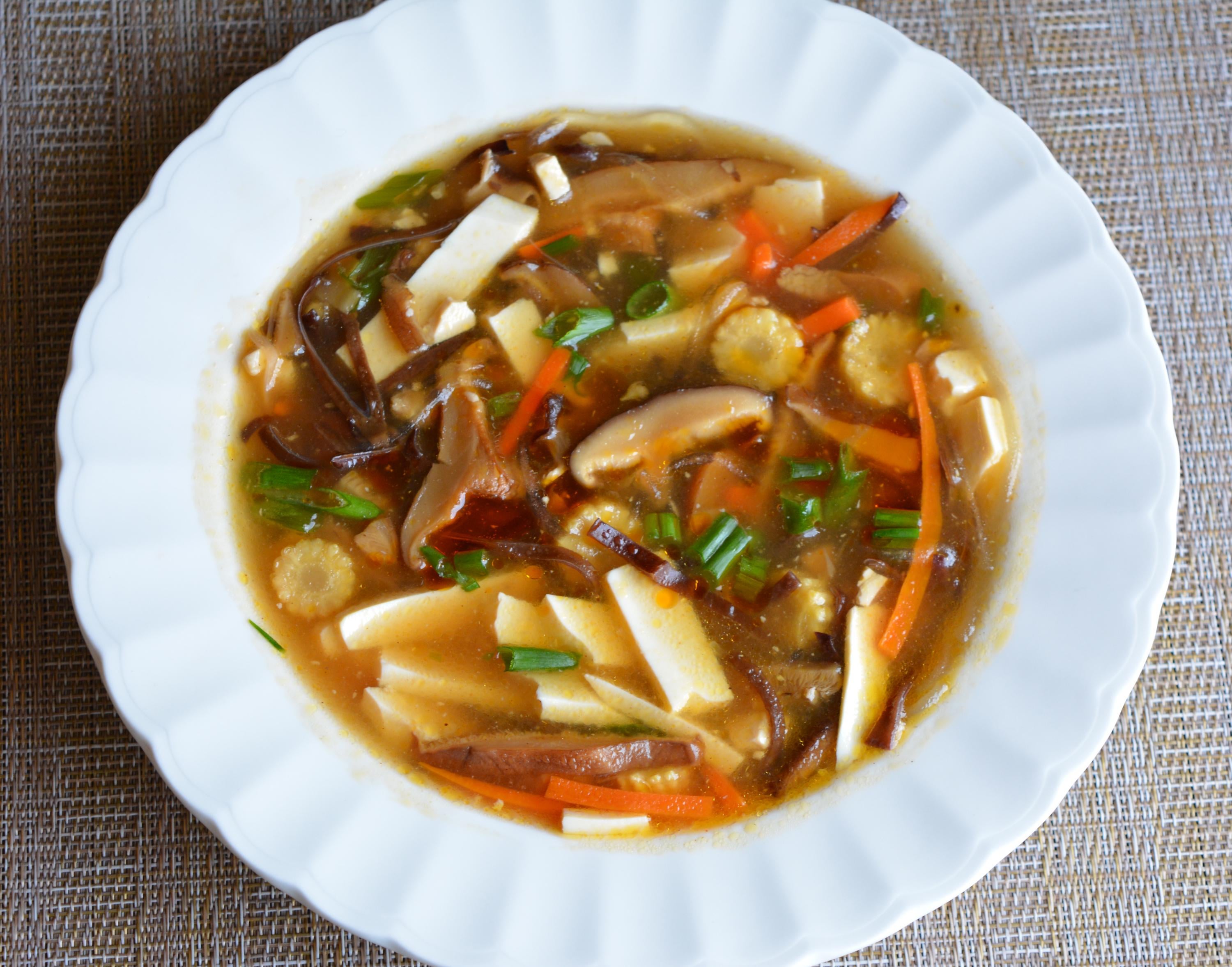 Home»1200 Calorie Vegan»Hot and Sour soup for snacking. 110 cal per 1.5 cup serving (pictured). Has tofu and mushrooms for higher protein.