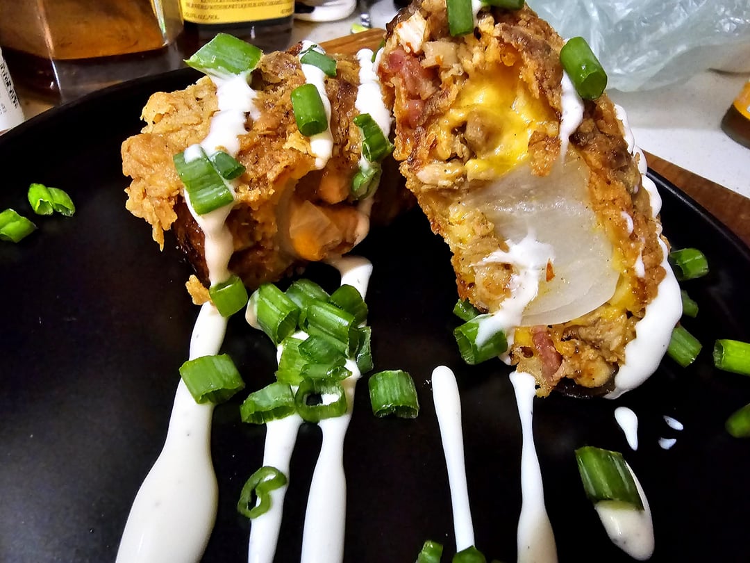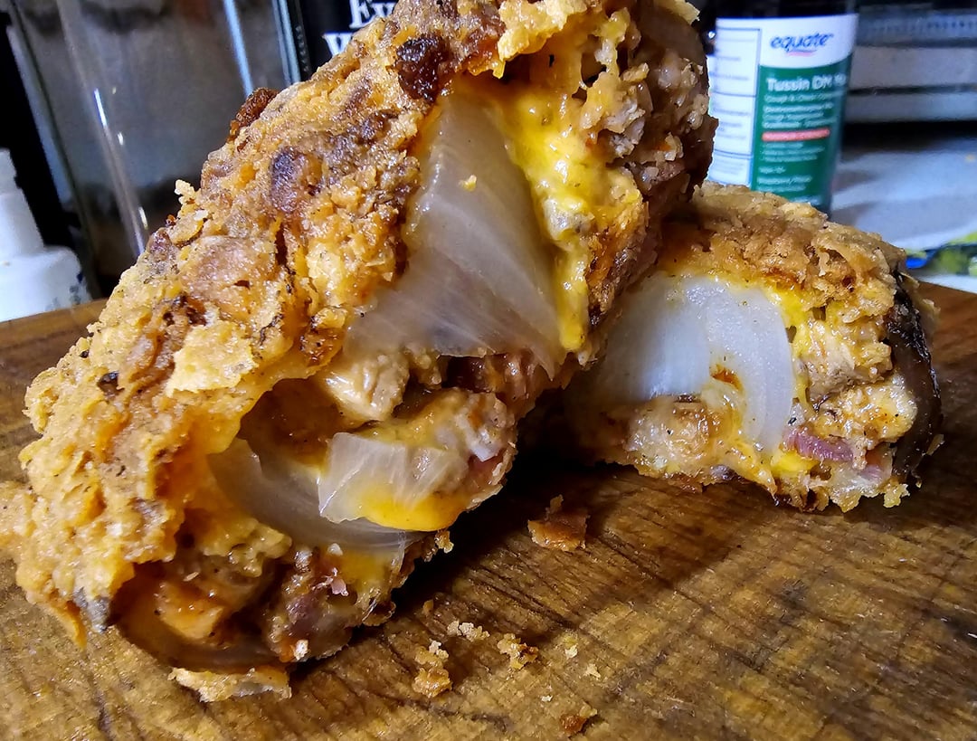 Sinuses have been kicking my ass lately so I figured I'd make something spicy to clear them and ended up with a buffalo chicken stuffed onion ring 😂