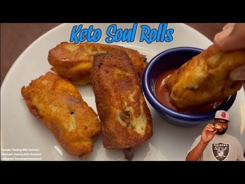Add cream cheese and mozzarella cheese to a bowl and microwave for 45 seconds to a minute. Once softened add in almond flour and egg and combine all the ingredients together to make the dough. Lay down the dough over parchment paper and roll out to a 1/2 in. and cut into squares. Fill with a tablespoon of cauliflower mac and cheese, pulled pork, and greens. Close all sides to shape the roll and fry in your choice of oil for 1 minute per side over medium-high heat. Let drain to remove excess oil and enjoy!