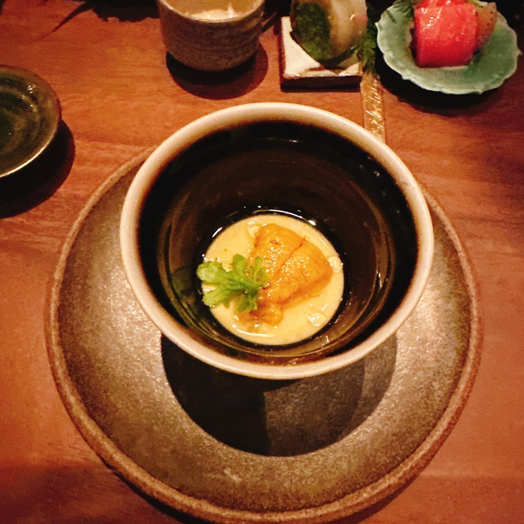 ⢠In the opening kaiseki-style course, the egg custard was overcooked, though the rest of the bites in this flight were delightful.