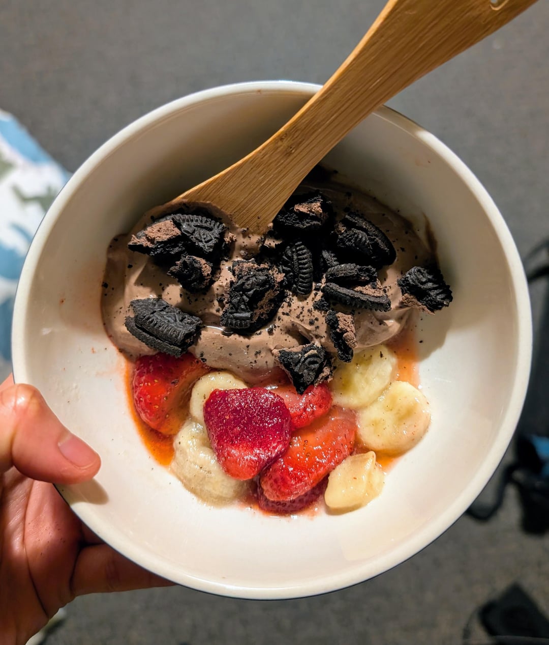 Blended 210g silken tofu, 2 tsp cocoa powder, 60g melted chocolate and a pinch of salt. Then let it set in the fridge for a few hours. That made three portions for me