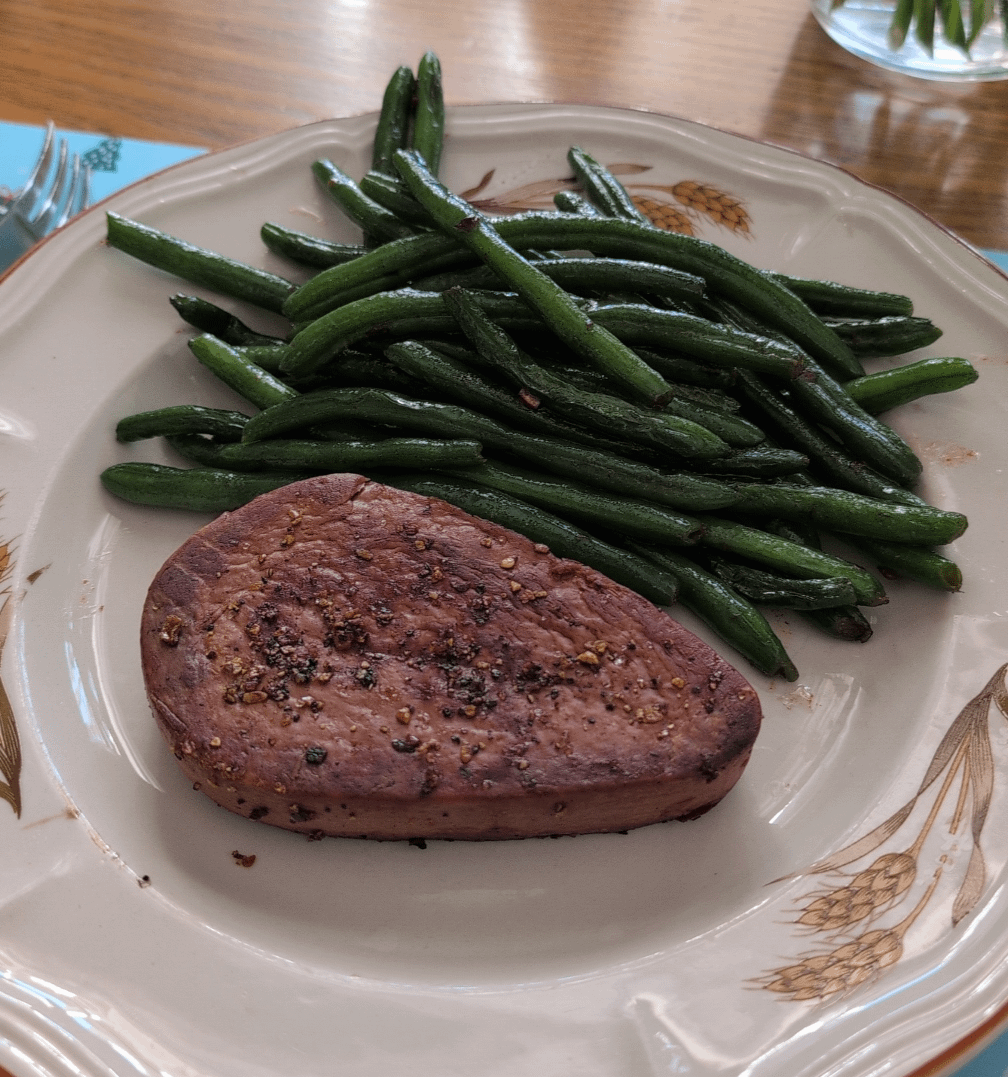 2. I am ambivalent about the meati steaks, like, they’re not bad-tasting but the texture wears on me after a while and I need to drink lots of water to get them down? I should have thought of A1 – I used to love that stuff back in the day (it was the only way I could eat real steak). I’m not sure what disney-inspired garlic green beans are, but they definitely need something green with them. 🙂