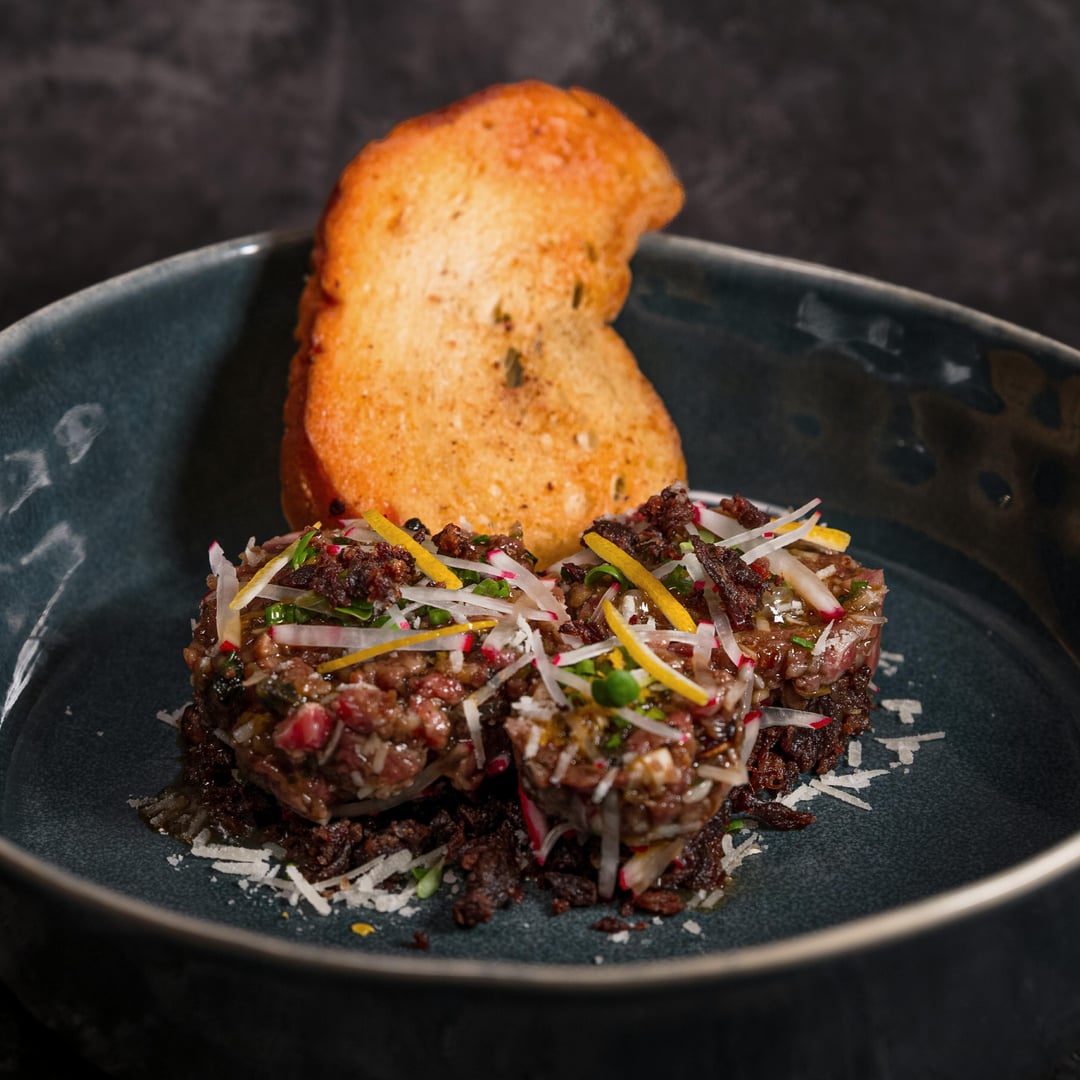 Edit: I just read one of OP’s comments stating the used dried beef, cooked beef and raw beef in this dish. OP, stop trying to be the next Heston Blumenthal here. Tartare is a raw dish, period.