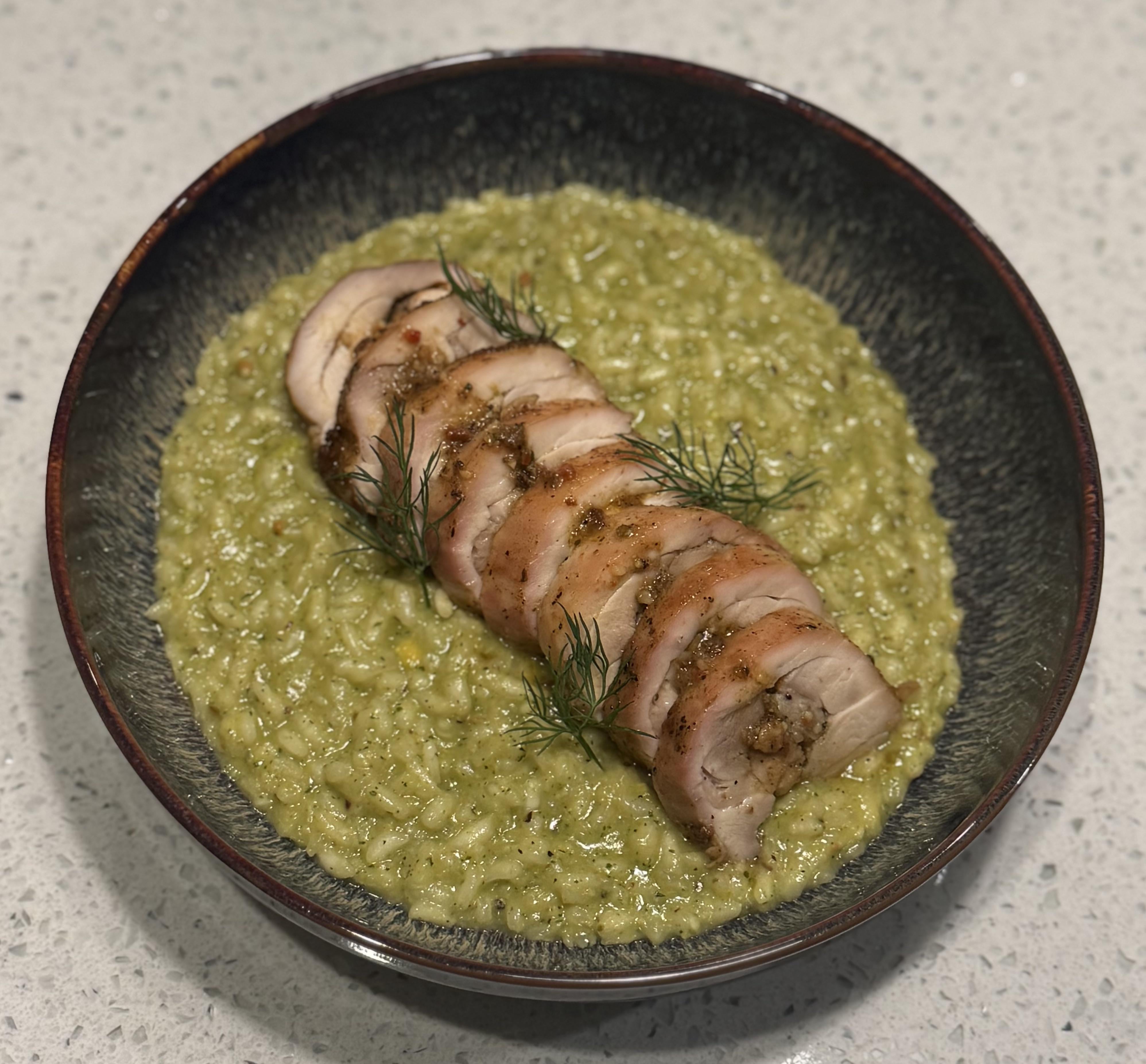 [Home Cook] pistachio herb risotto with smoked chipotle garlic chicken thigh by Shameful_fisting Culinary Culinary Plating