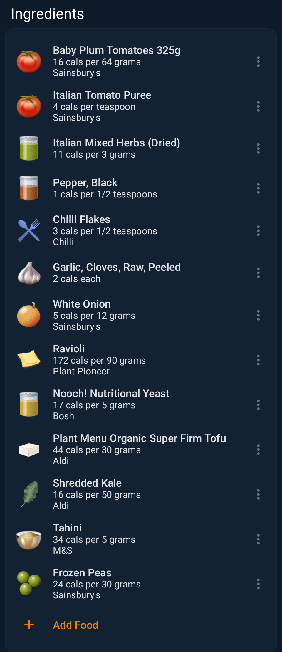 Made a quick creamy sauce with baby tomatos, onion, garlic, herbs & spices, and tahini. And used it to coat Sainsbury's plant pioneers ravioli (my favourite), kale, peas and tofu