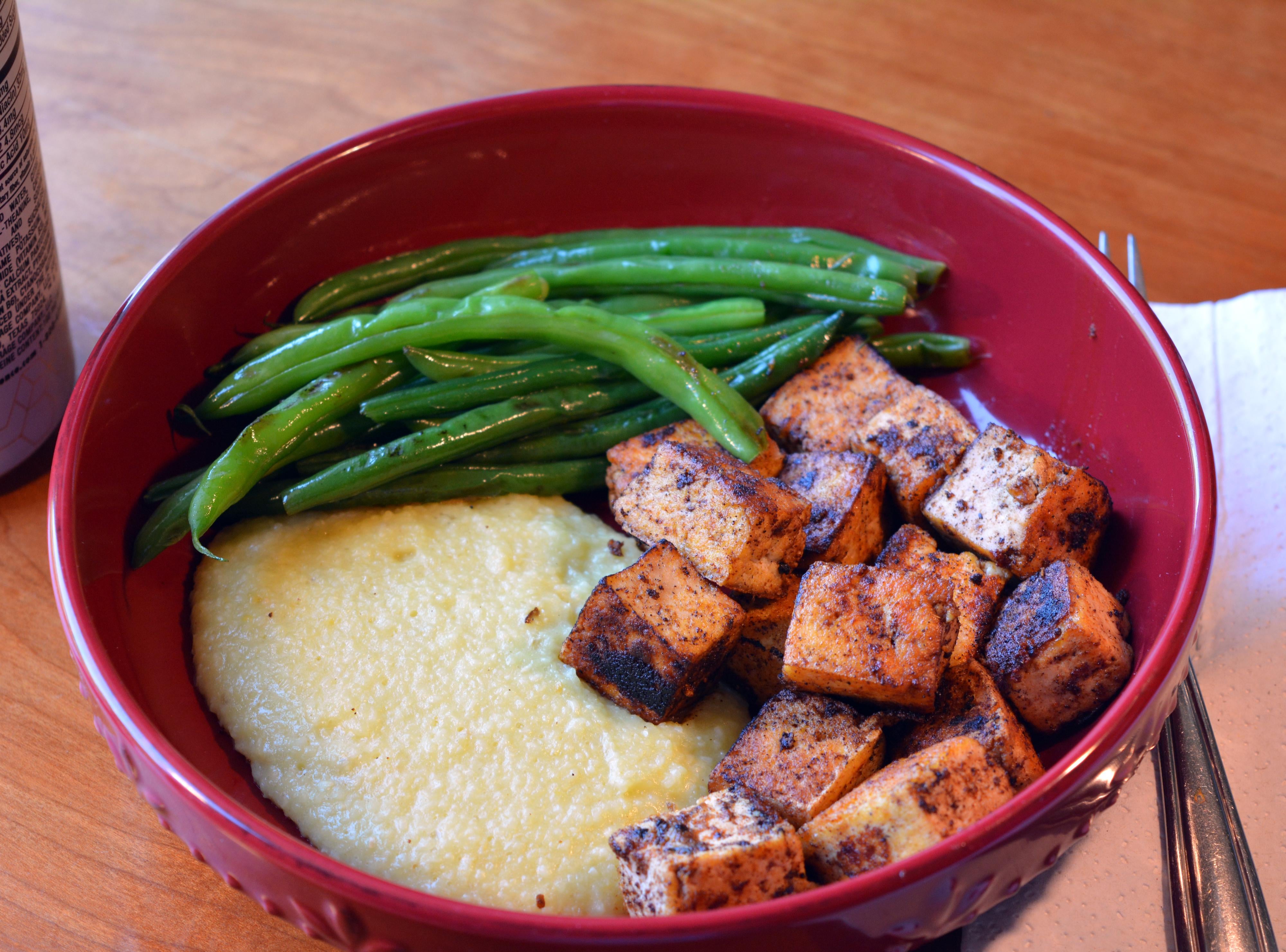 Blackened Cajun tofu, cheesy grits, and green beans. 332 cal, 26 g protein by BeccaJ9382 1200 Calorie Vegan 1200 Calorie Vegan Diet 1200 Calorie Vegan Meal Plan 1200 Calorie Vegetarian 1200 Calorie Vegetarian Diet 1200 Calorie Vegetarian Meal Plan Vegan Vegan 1200 Calorie Vegan 1200 Calorie Diet Vegan 1200 Calorie Meal Plan Vegan 1200 Kcals Vegan 1200 Kcals a day Vegan 1200 Kcals per day Vegan 1200 Kilocalorie Vegan 1200 Kilocalorie a day Vegan 1200 Kilocalorie per day vegan1200isplenty Vegetarian