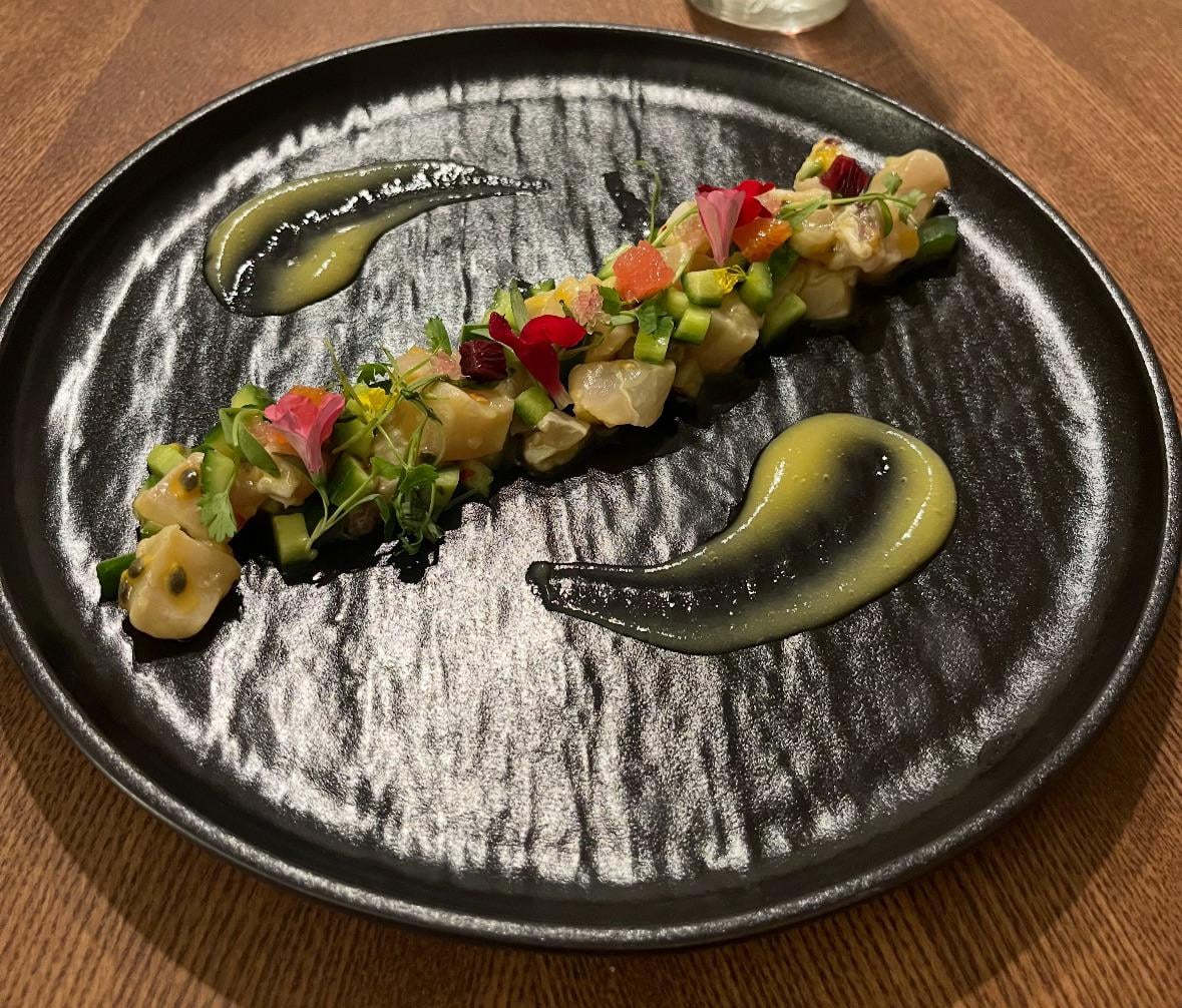 White Seabass Crudo | Passionfruit, Citrus, Foraged Flowers