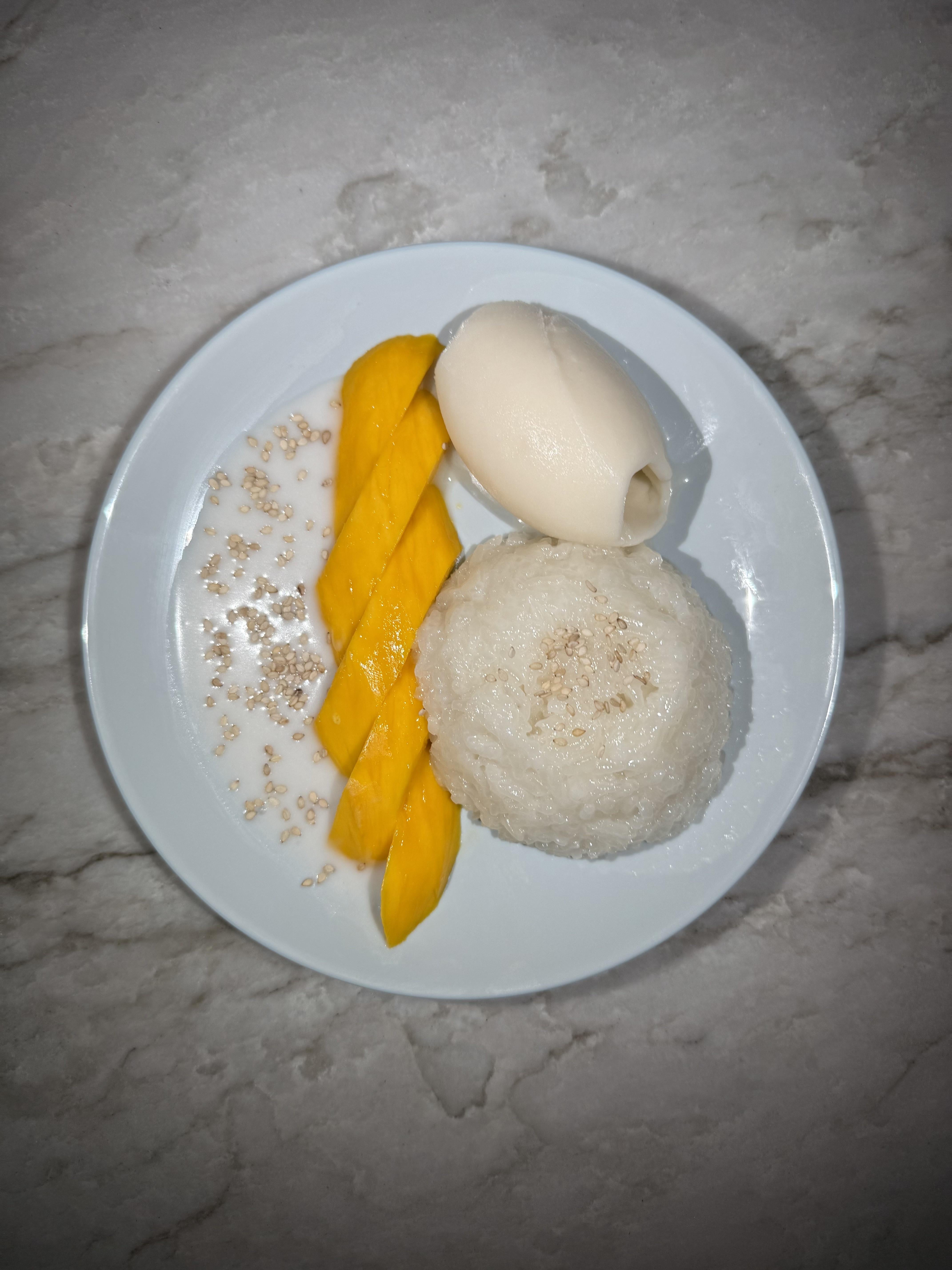 First time trying ever a quenelle, but I messed up on the texture of the ice cream since it was icier than the dairy based ones I've made which made it harder. A pandan leaf wouldve been nice if I could find one along with some black sesame seeds for contrast.