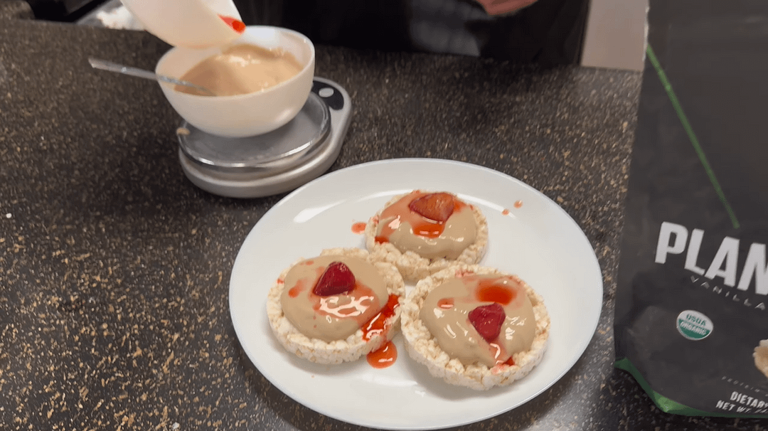 thebodybuildingvegan on May 1, 2025 2:54 pm Ingredients (2 servings) – 200g silken tofu – 28g (one packet) Jello sugar-free cheesecake pudding mix – 120g Vedge plant protein powder – 200g strawberries, fresh or frozen – 3 slices of unsalted Quaker rice cakes Instructions – If using frozen strawberries, microwave them for about a minute and a half to defrost. – In a blender, combine silken tofu, Jello cheesecake pudding mix, and 60g of protein powder. – Blend in half of the strawberries for a smoother consistency. – Add the remaining 60g of protein powder and blend again. If it’s too thick, add a splash of water. – Spoon the mixture onto the rice cakes to use as a crust. – Top with the rest of the strawberries and enjoy! Chill if you want a firmer consistency.
