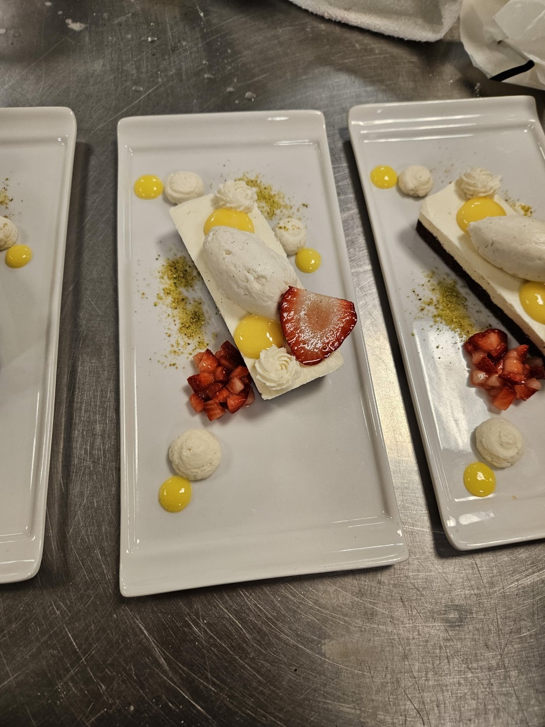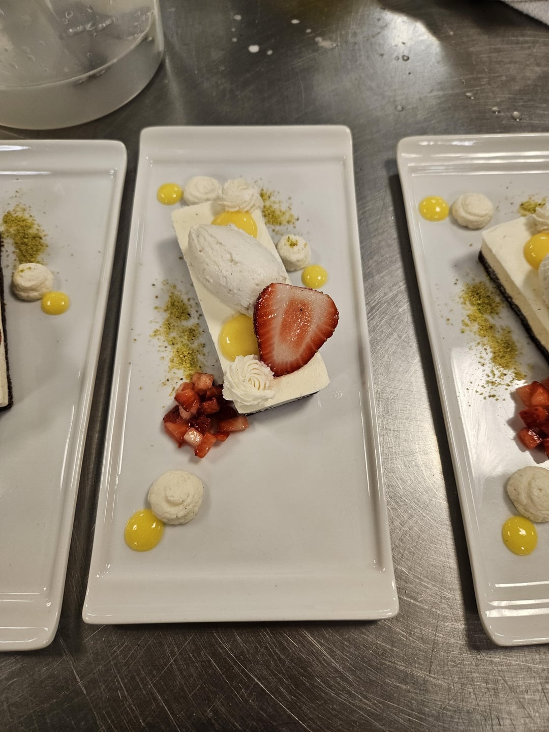 I'm part of a culinary competition team, we had a practice session this past week with a mystery basket of ingredients and I was in charge of dessert. I'm very new to plating, I'm looking for any constructive advice. Thanks!