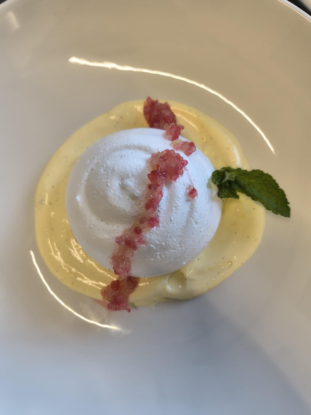 Rhubarb Lime Pavlova – crisp meringue, rhubarb compote filling, vanilla-saffron sabayon, finger lime caviar by Puzzleheaded-Use1738 Culinary Culinary Plating