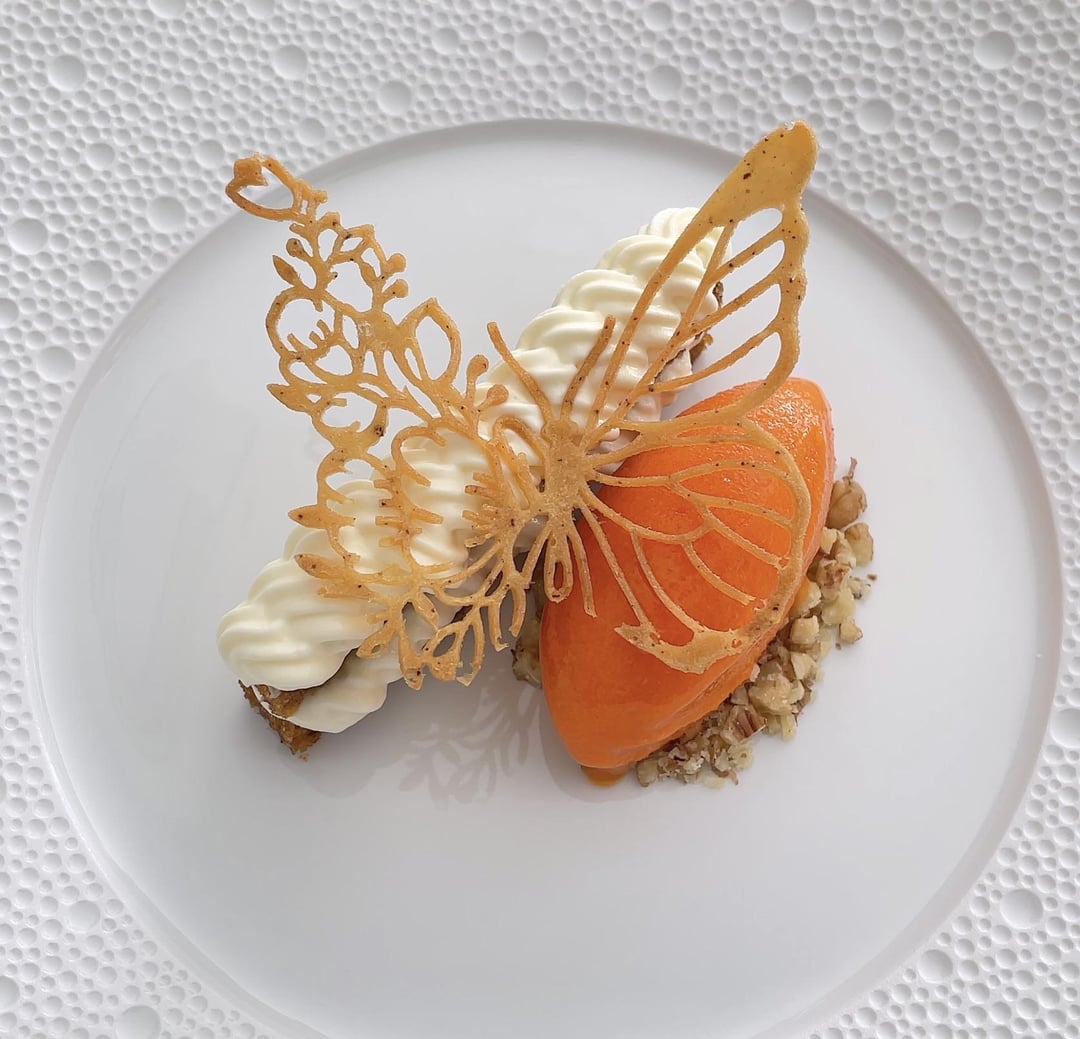 Carrot Cake with Cream Cheese Mousse, Carrot Sorbet & Brown Butter Tuile by Hai_Cooking Culinary Culinary Plating