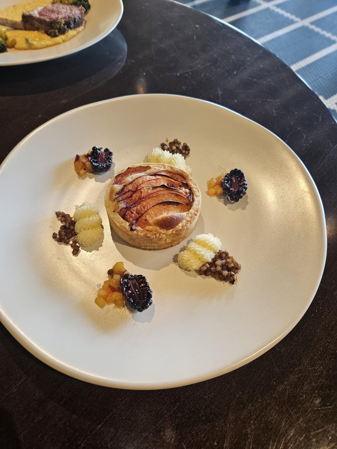 Unhappy with the plating on this, looking for feedback and alternatives. It was a practice bake for an upcoming mystery basket competition so some of the ingredients were required elements, such as the groats.