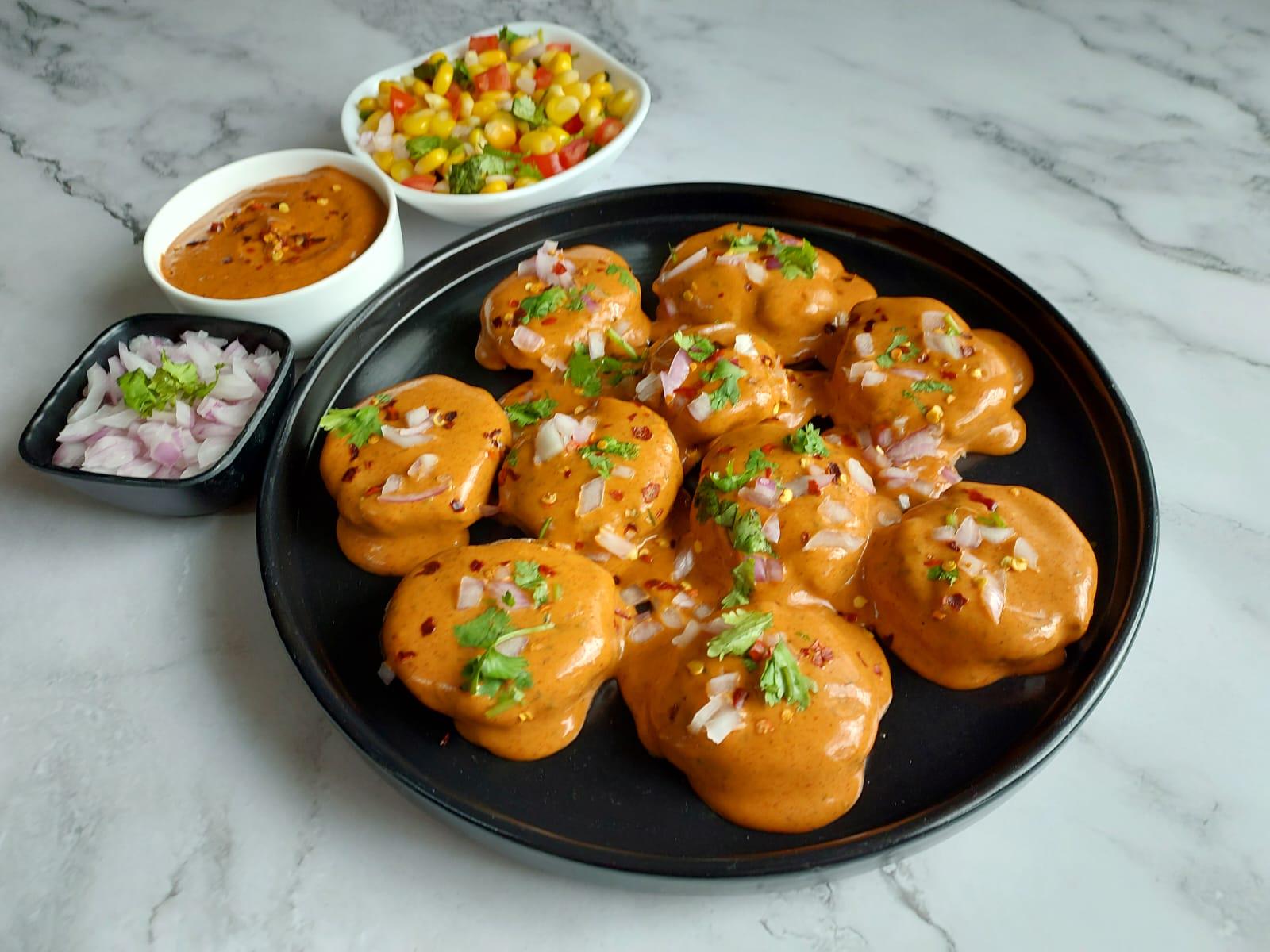 Boil the baby potatoes with skin on until just soft but not mushy. Let them cool, then gently press with a potato masher to slightly flatten them. Mix corn flour, all-purpose flour, red chili powder, baking soda, and salt in a bowl. Add enough water to make the batter medium-thin and flowing. The batter should lightly coat the surface of the potatoes. Dip each potato into the batter, coat lightly, and shallow or deep fry until crispy and golden. Alternatively, you can bake them in a preheated oven at 200 degrees C for 30-35 minutes until the edges start to crisp. Brush or drizzle each potato with oil or melted butter before placing it in the oven. Mix mayonnaise, cream or hung curd, Cajun spice, tomato ketchup, and salt in a bowl. Whisk until smooth and pourable. Add 1-2 tsp milk to reach your desired consistency. Arrange hot, crispy potatoes on a serving plate. Drizzle generously with the creamy Cajun sauce. Garnish with chopped coriander leaves, diced onion, and a sprinkle of chili flakes. Serve Cajun potatoes with tomato-onion salsa or corn salad.