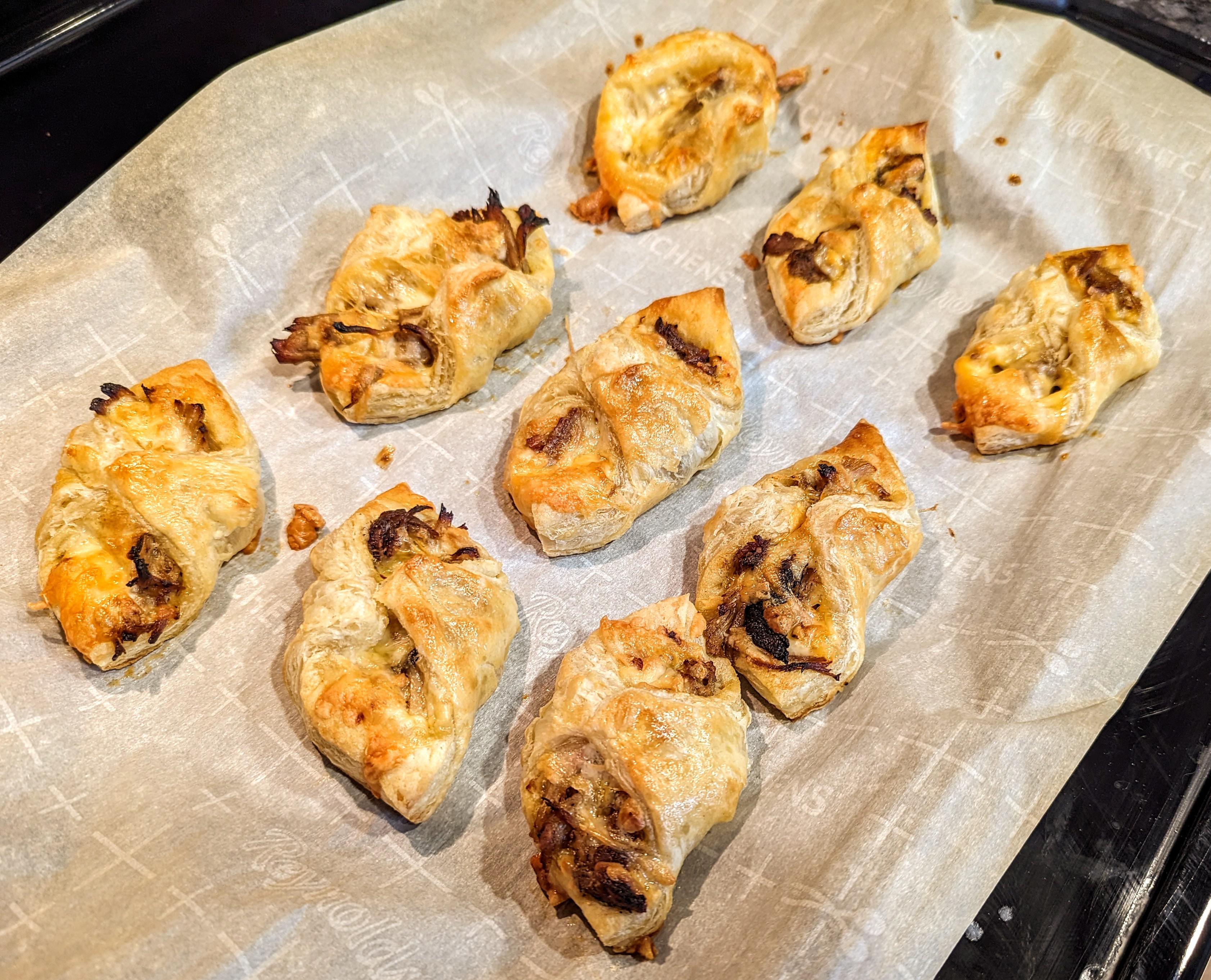 Pulled Pork Puffs! Pulled pork, BBQ, cheddar cheese, and puff pastry. by craemerica Appetizer Appetizers