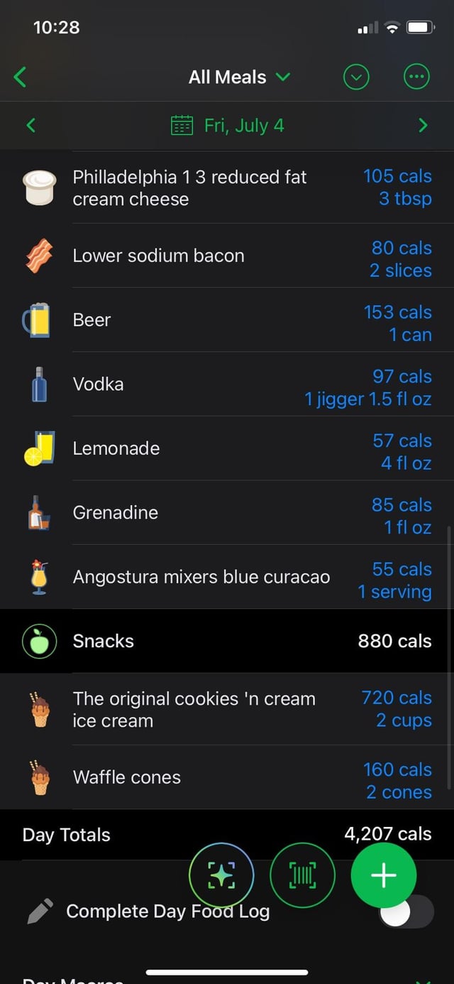 So I’ve been in a deficit on and off for over a year (F, 5’3”, 143lb) and am down a little over 20lbs! I’ve been trying to lose weight but also improve my relationship with food, learn how to trust myself to eat better, and listen to my body’s hunger cues. Well this 4th of July, I just had fun. I ate and drank what I wanted and just enjoyed the day without worrying about calories. This morning I did a food reflection to see why my stomach was upset and to just get an idea of how much fun I had… and wow. My first thought was “oh no I’ve ruined all of my progress” but instead I will think “I had a lot of fun yesterday, but today is a new day and I’m back to making healthier choices. Everything will be fine.”