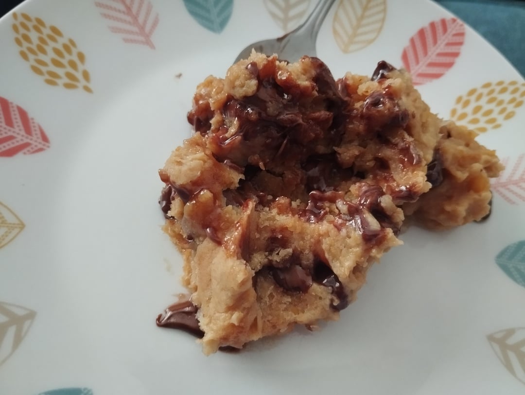 At this point, you have a dough that tastes kind of beany and you think this is a waste of time. Portion out a piece to eat, I would go 50-100g, microwave for just 30-45 seconds. Suddenly, beany weird is gone/massively faded, you have a nice bit of melting chocolate cookie dough, that also has some fibre