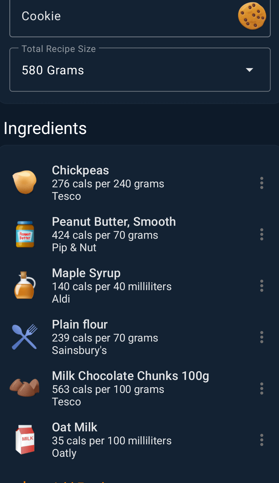 Blend chickpeas, peanut butter, maple syrup and a milk together to make a paste (I did it in a nutribullet, it just about copes). Fold in flour, salt, a little baking powder (I think this was too much flour, next time I'll go for 50g) and chocolate chips or whatever you like.