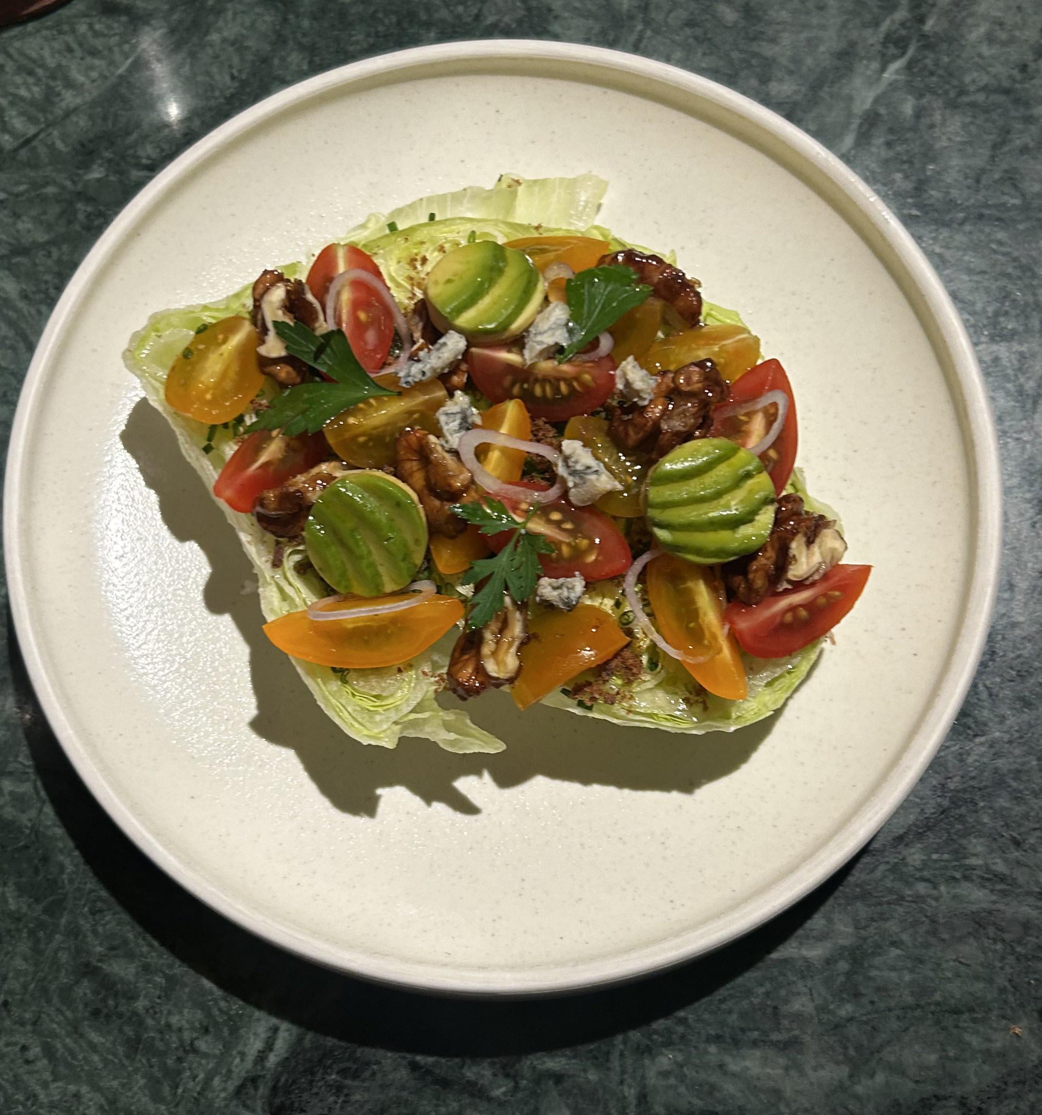 I actually like it! As a dinner plate for 1. If you’re doing family style serving, what is the point of a big fancy wedge? This is not a shareable salad.