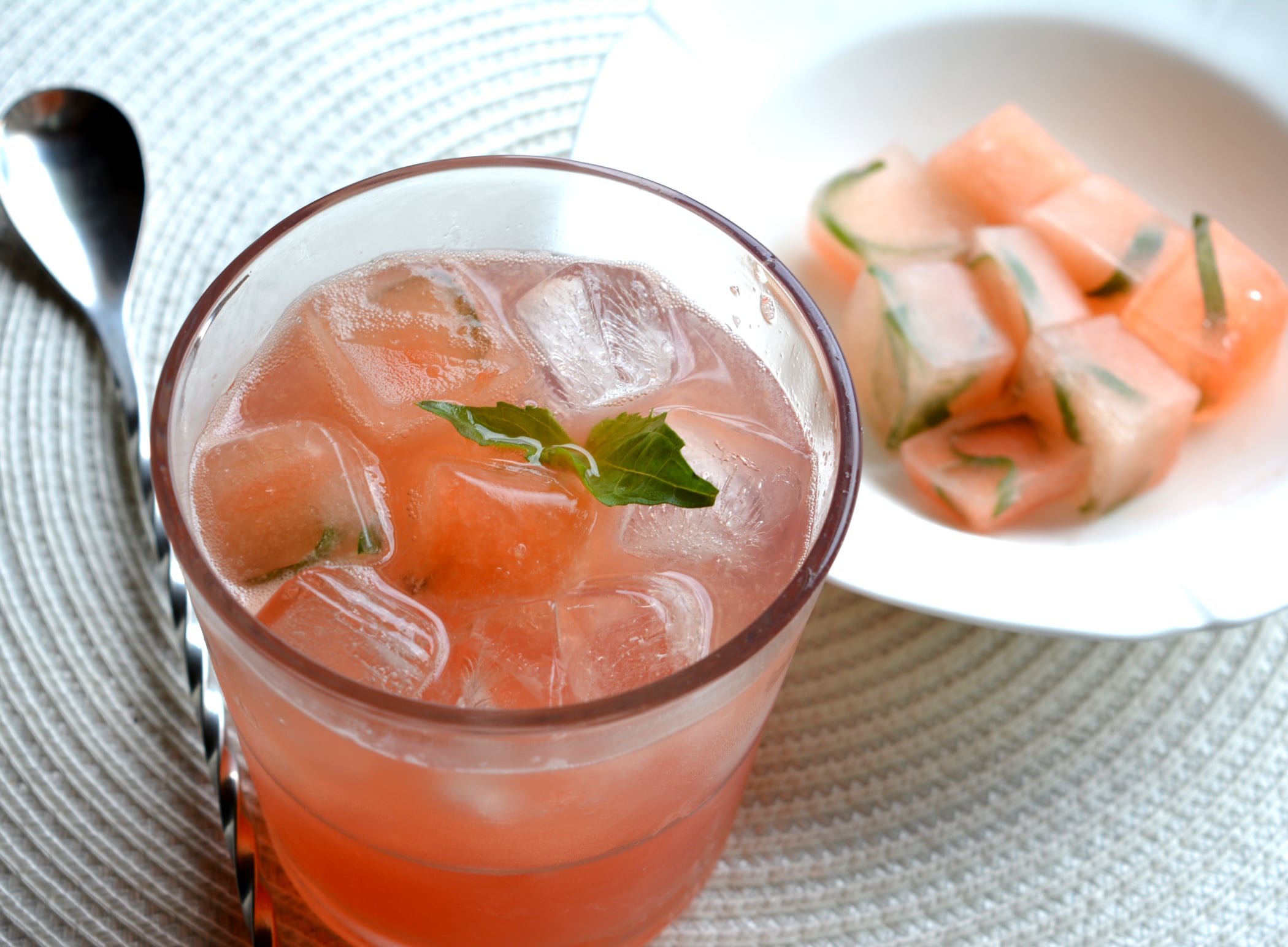 My latest mocktail experiment – 24 calorie Grapefruit-Ginger-Basil Fizz. So yummy! I made ice cubes out of grapefruit juice and basil to keep it from getting too watery.