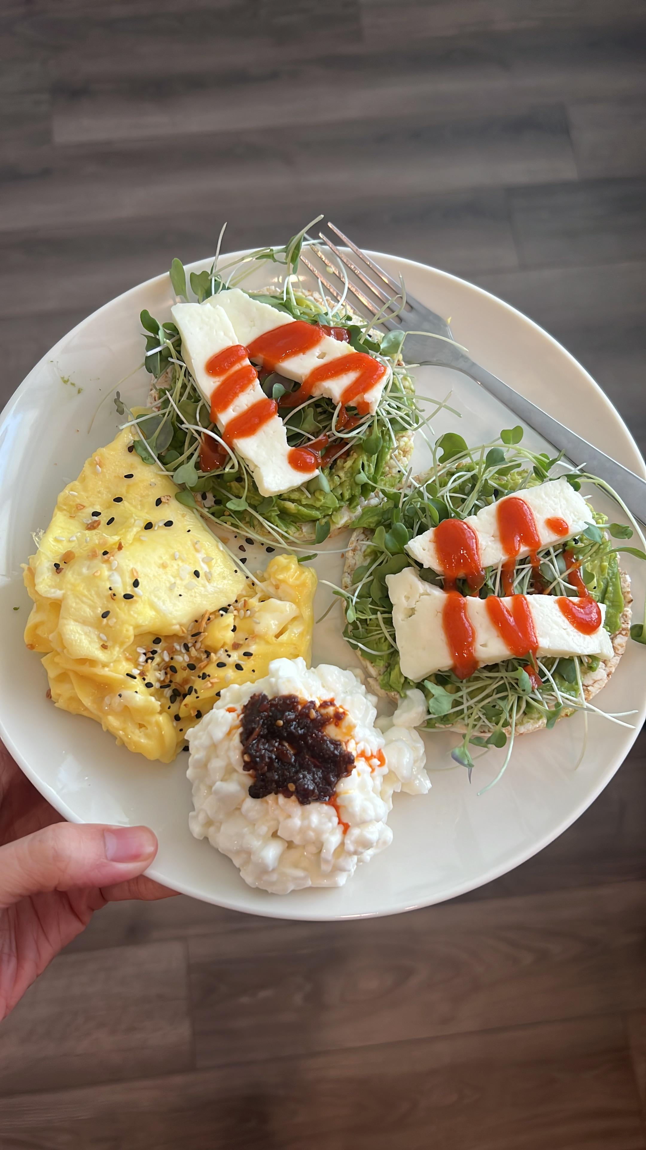 Mashed avocado, broccoli sprouts, and halloumi on multigrain rice cakes. Scrambled eggs. 1% cottage cheese with miso chili oil. by rainyday-cafe 1500 Calorie 1500 Calorie Diet 1500 Calorie Meal Plan 1500 Kcals 1500 Kcals a day 1500 Kcals per day 1500 Kilocalorie 1500 Kilocalorie a day 1500 Kilocalorie per day 1500isplenty