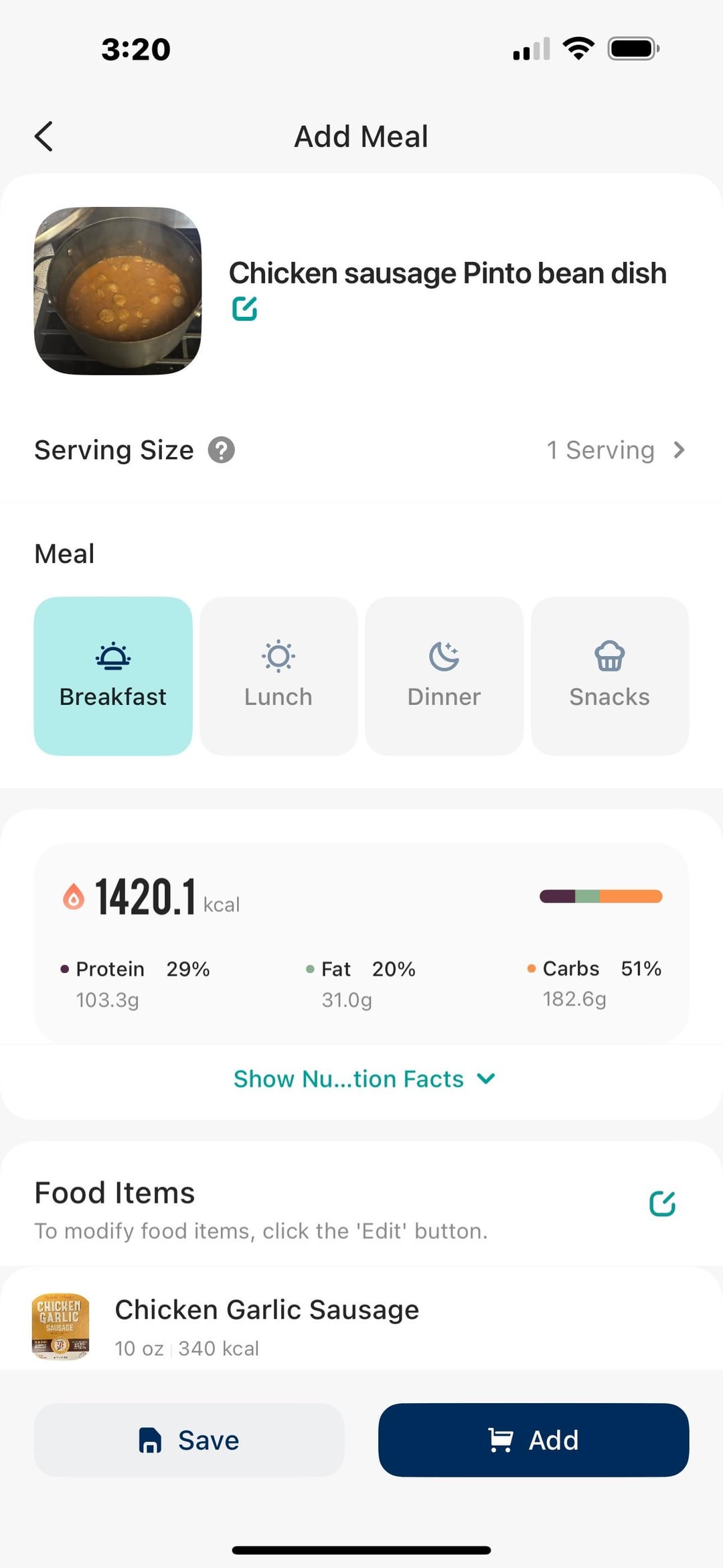 This is pinto beans with chicken sausage, red, green peppers, onions, tomato and tomato sauce. I used taco seasonings as the seasoning. Plan to eat off this for the next few days. A little over a cup and a half is 307 calories, good enough for me.