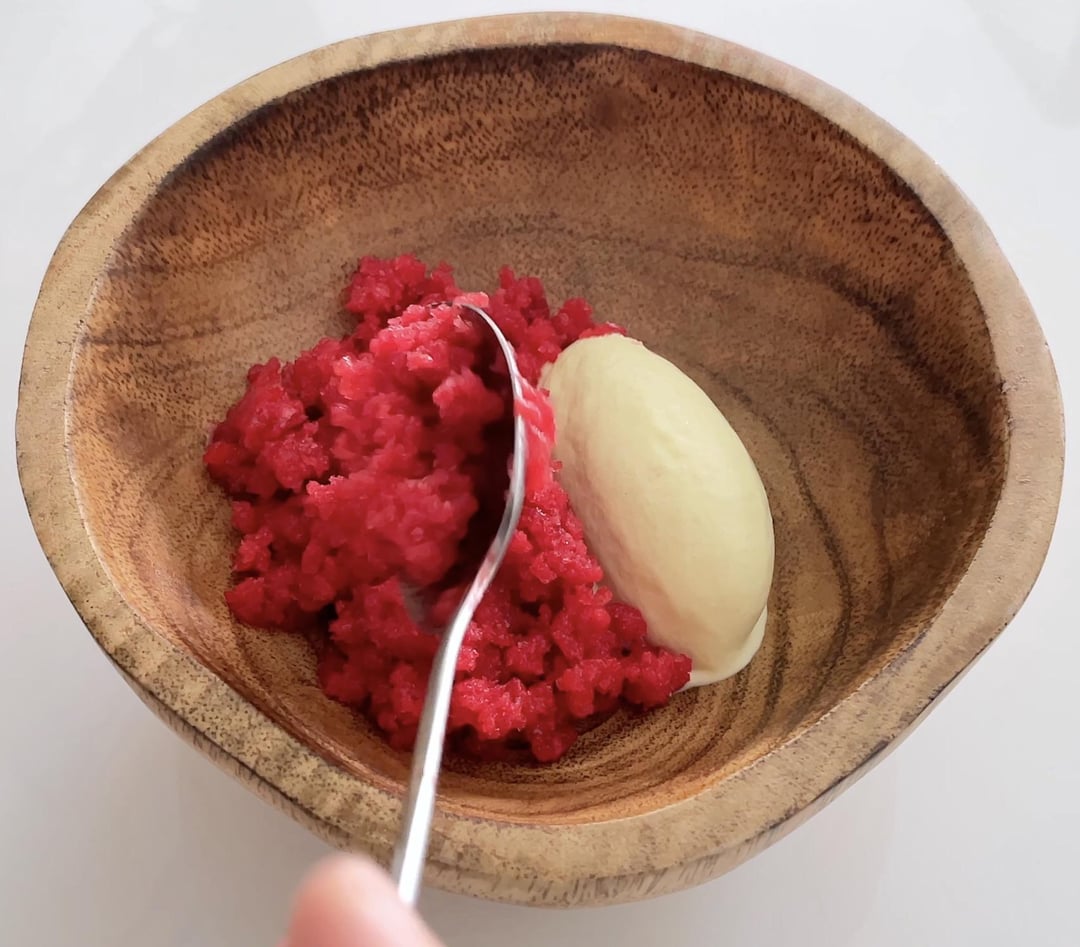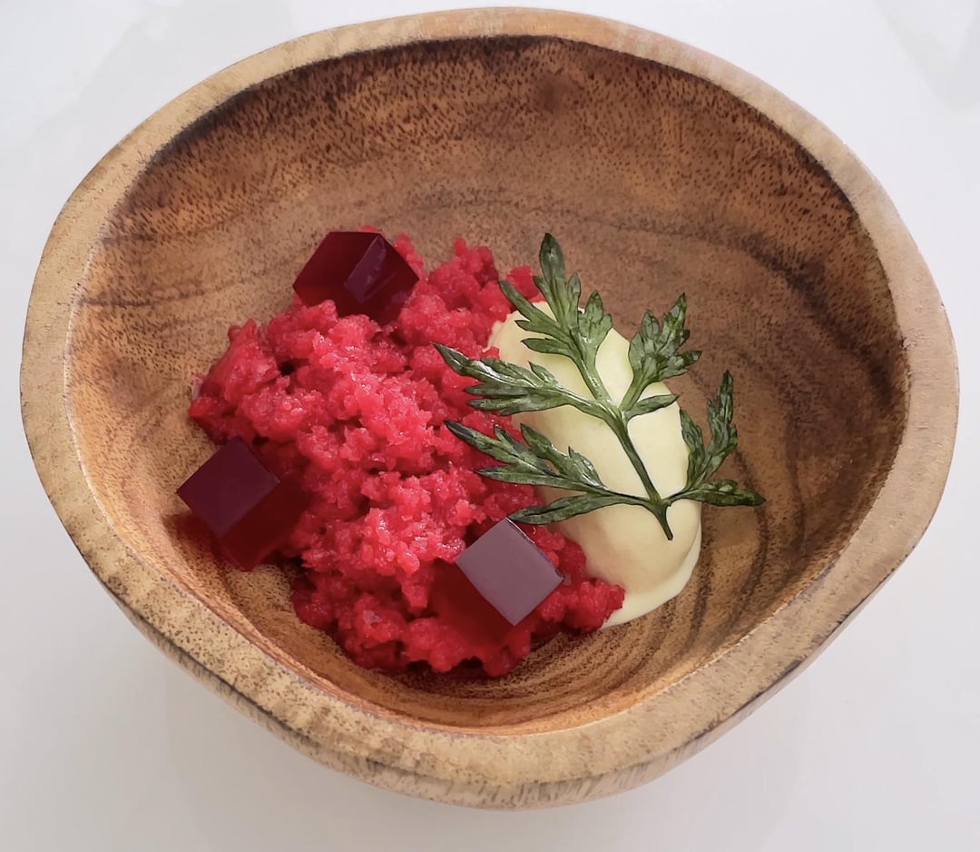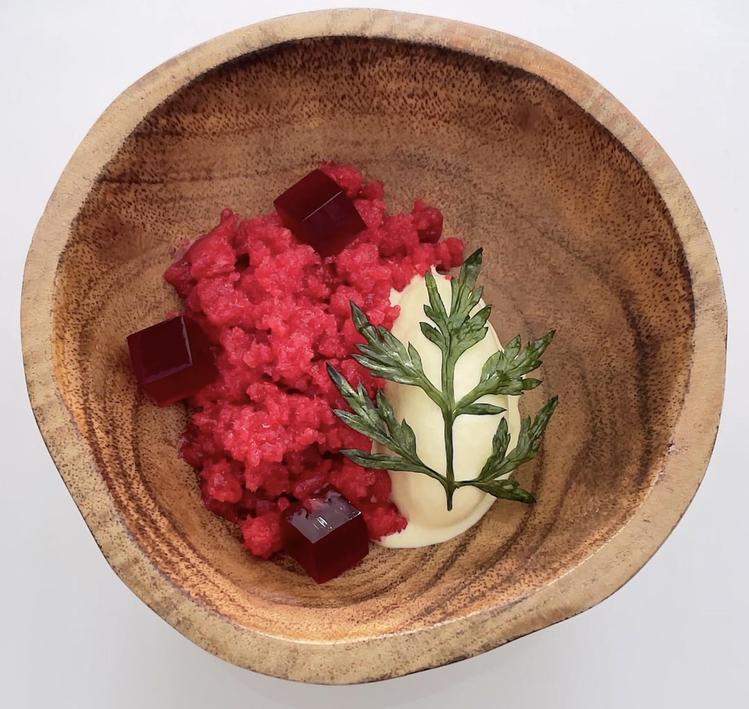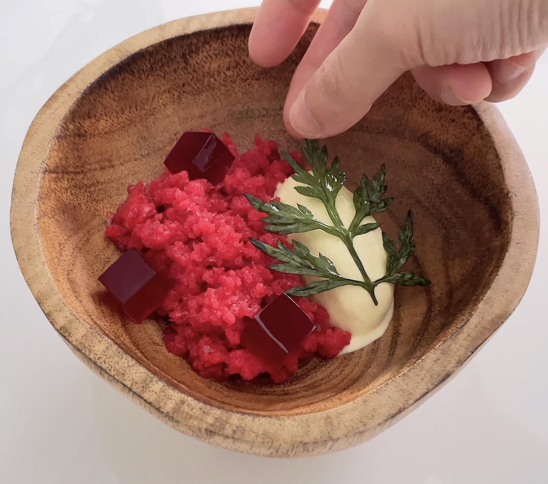 Mugwort ice cream, mugwort chips, raspberry granita, raspberry jelly & honey mascarpone by Hai_Cooking Culinary Culinary Plating
