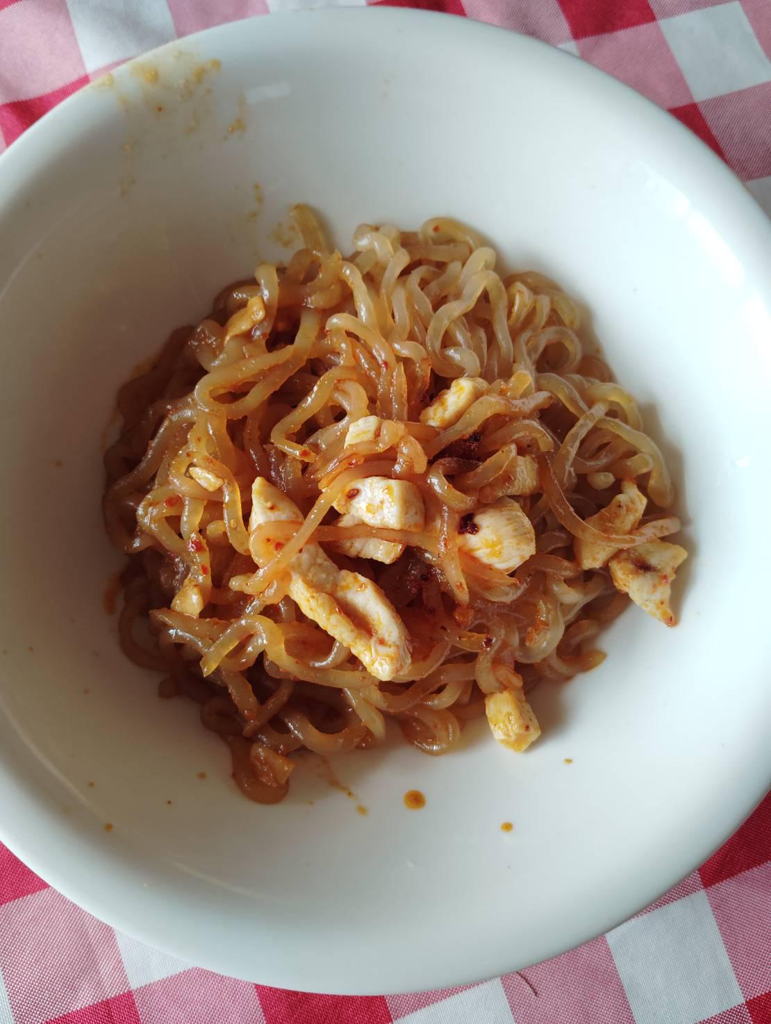 First starting with shirataki noodles for lunch! With some chicken for protein.