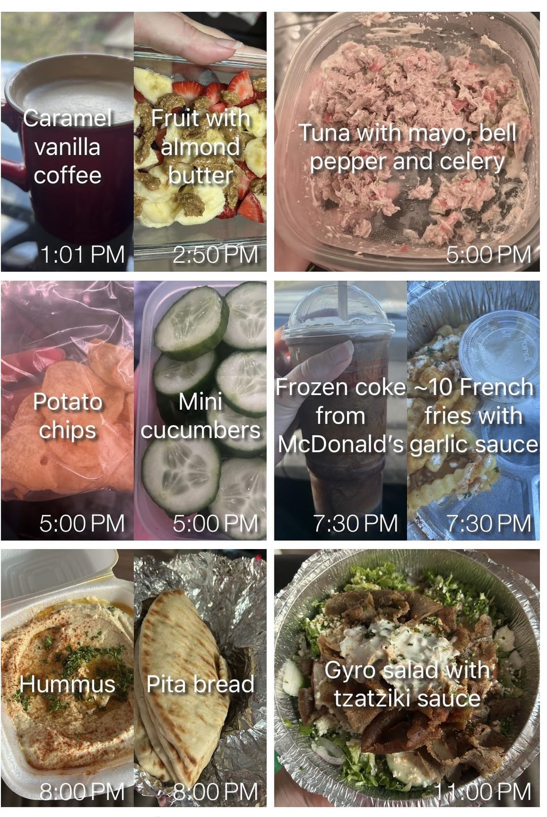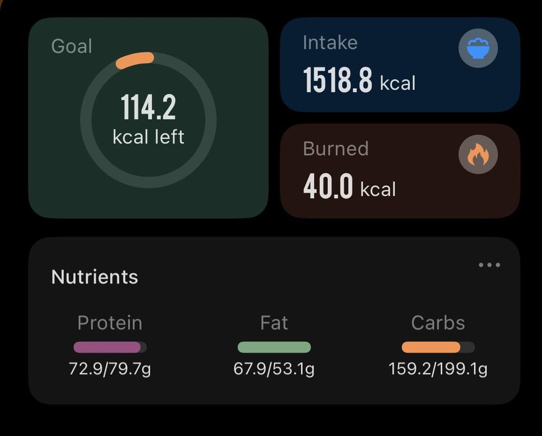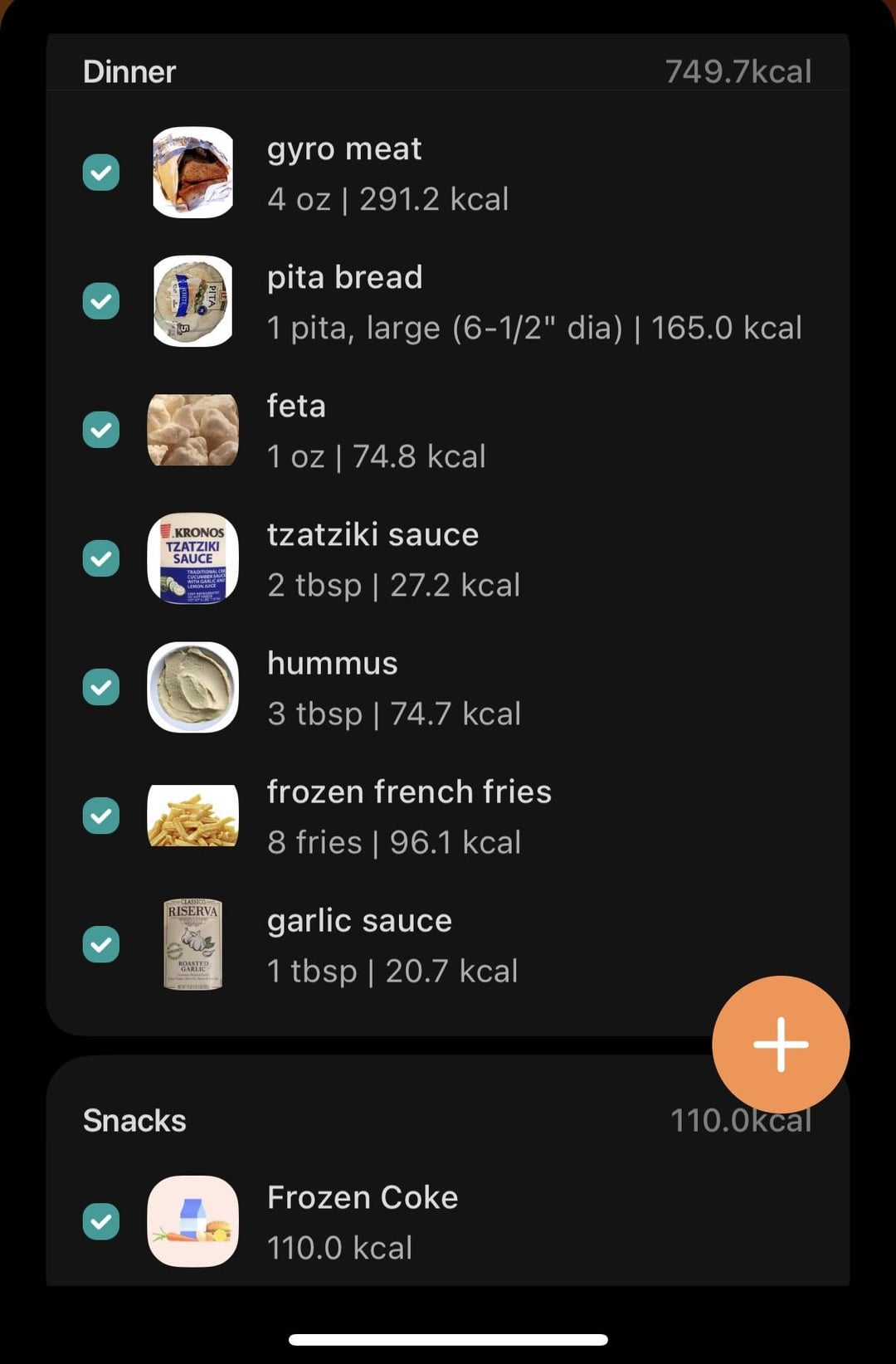 Had a light breakfast and lunch so I could get Greek food for dinner. Ate half at 7 and the rest around 11. Also discovered McDonald’s frozen Coke is only 110 calories for a large which is amazing because I can’t stand diet soda, so I get the soda flavor without double the calories for just a small.
