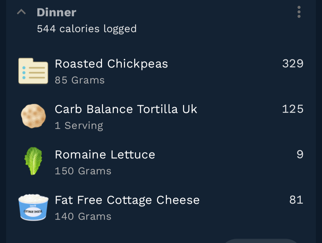 Made a crunchy salad with the rest of my roasted chickpeas and cottage cheese, and decided to put it in a wrap. The chickpeas are well seasoned so they acted as seasoning for the salad without additional dressing once it was all mixed up. I'm not a fan of beany texture but find crispy chickpeas are fantastic for the nutrients without the texture.