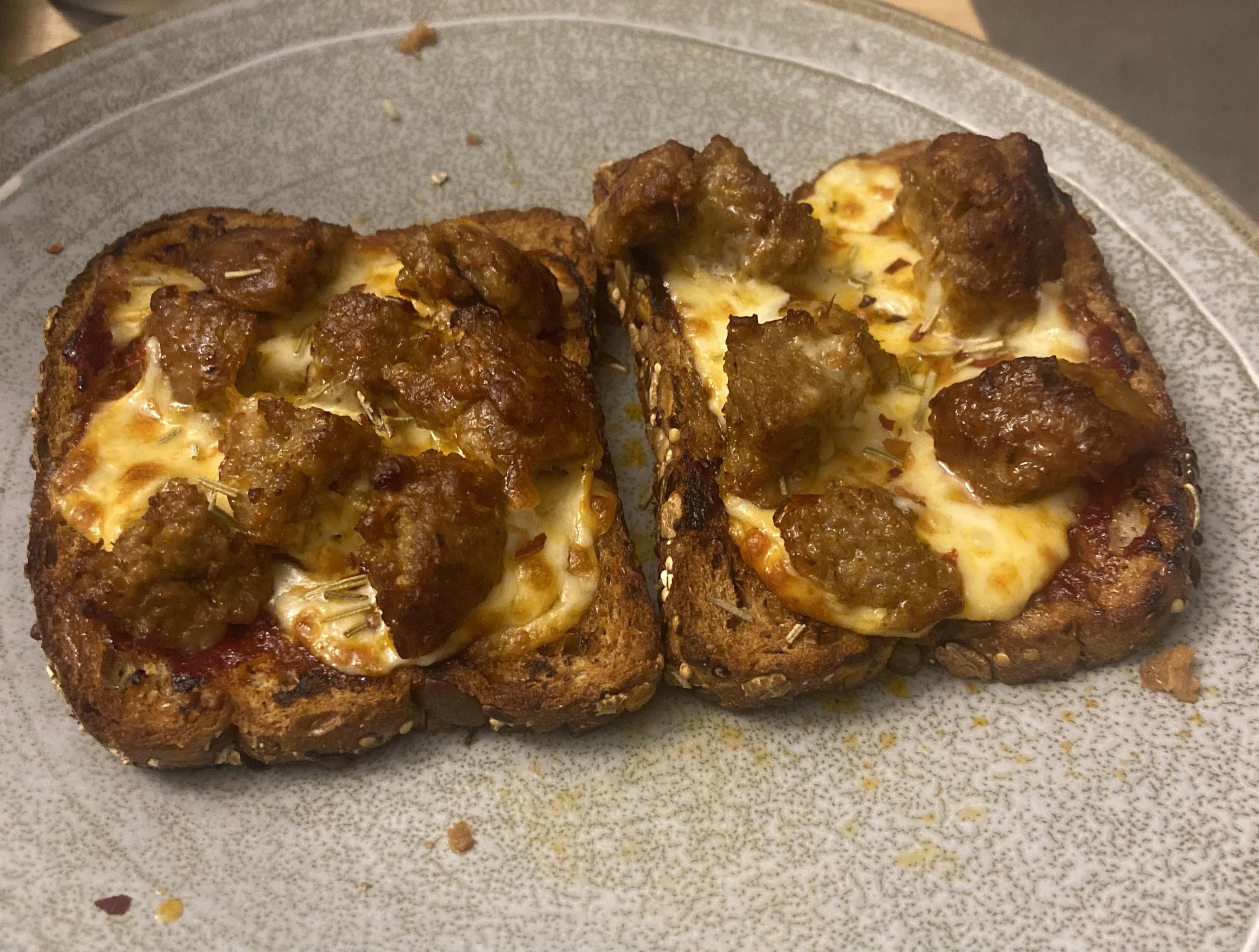 It doesn’t look like much but it a pretty good. Im not super hungry from the day either. Why didn’t I just make it a sandwich? Idk. Open faced sounded great today
