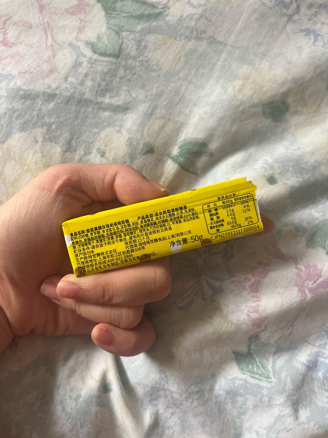 I did the conversions and it’s basically 20cal per candy. They’re not too sweet, nice and chewy, and definitely satiate my boba milk tea cravings. In my experience, they’re not as easy to find as other similar candies (Cola, Ramune, and fruit flavors). I found this in a Japanese mart in New York for $1.99 each and last found it in London but there are some sellers online (more at $3-4). If you ever find it in person, I highly recommend it. I bought like 10 lmao.