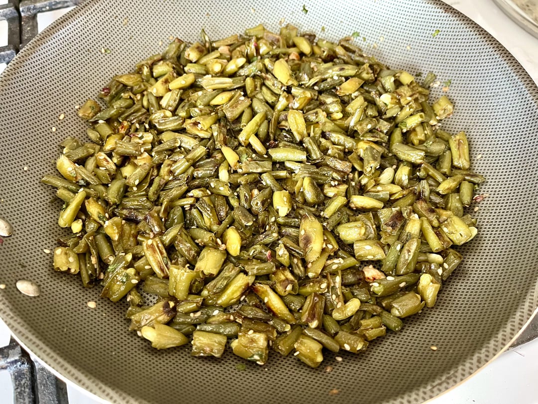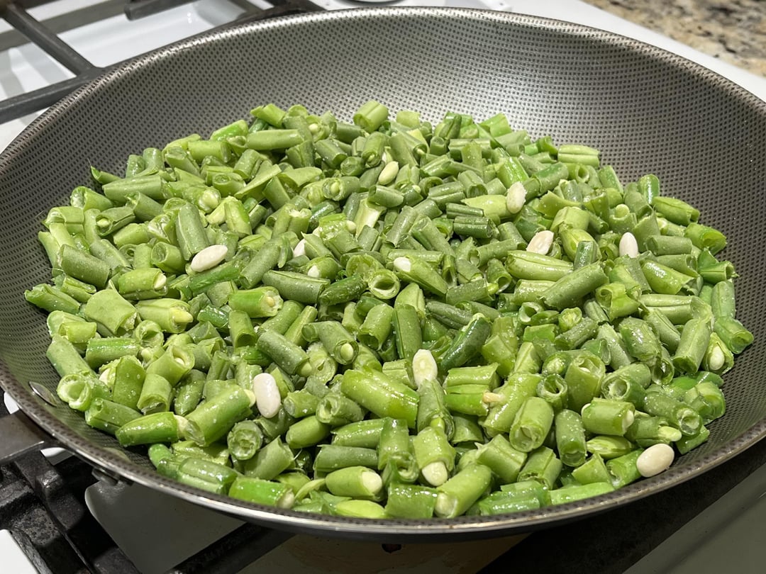 Step 2 – Heat cooking oil in a skillet on medium heat and sauté chopped green beans until half cooked (until you notice a color change).